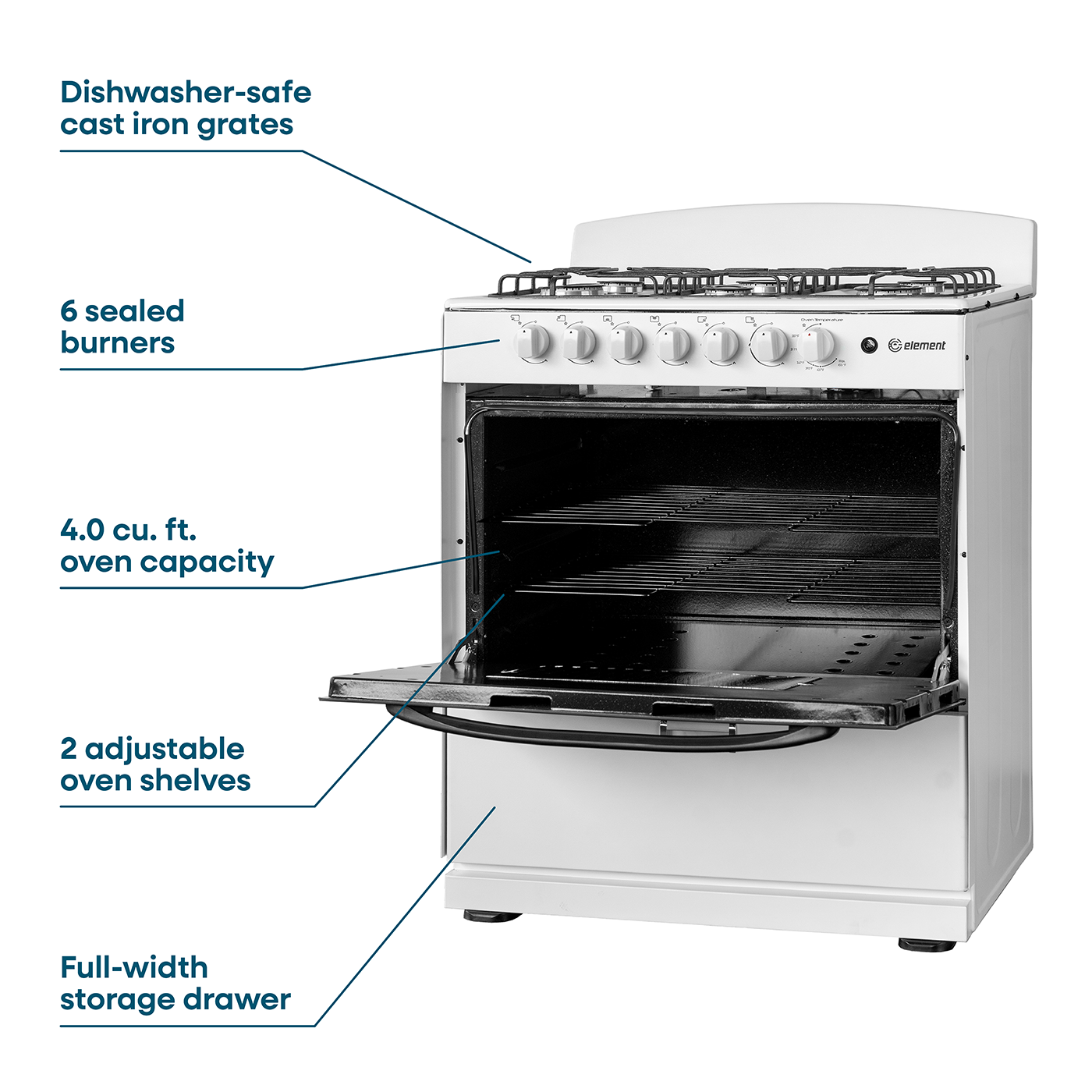 Element Electronics 4.0 cu. ft. 30", 6-Burner Gas Range (EEGR3A6MCCW)