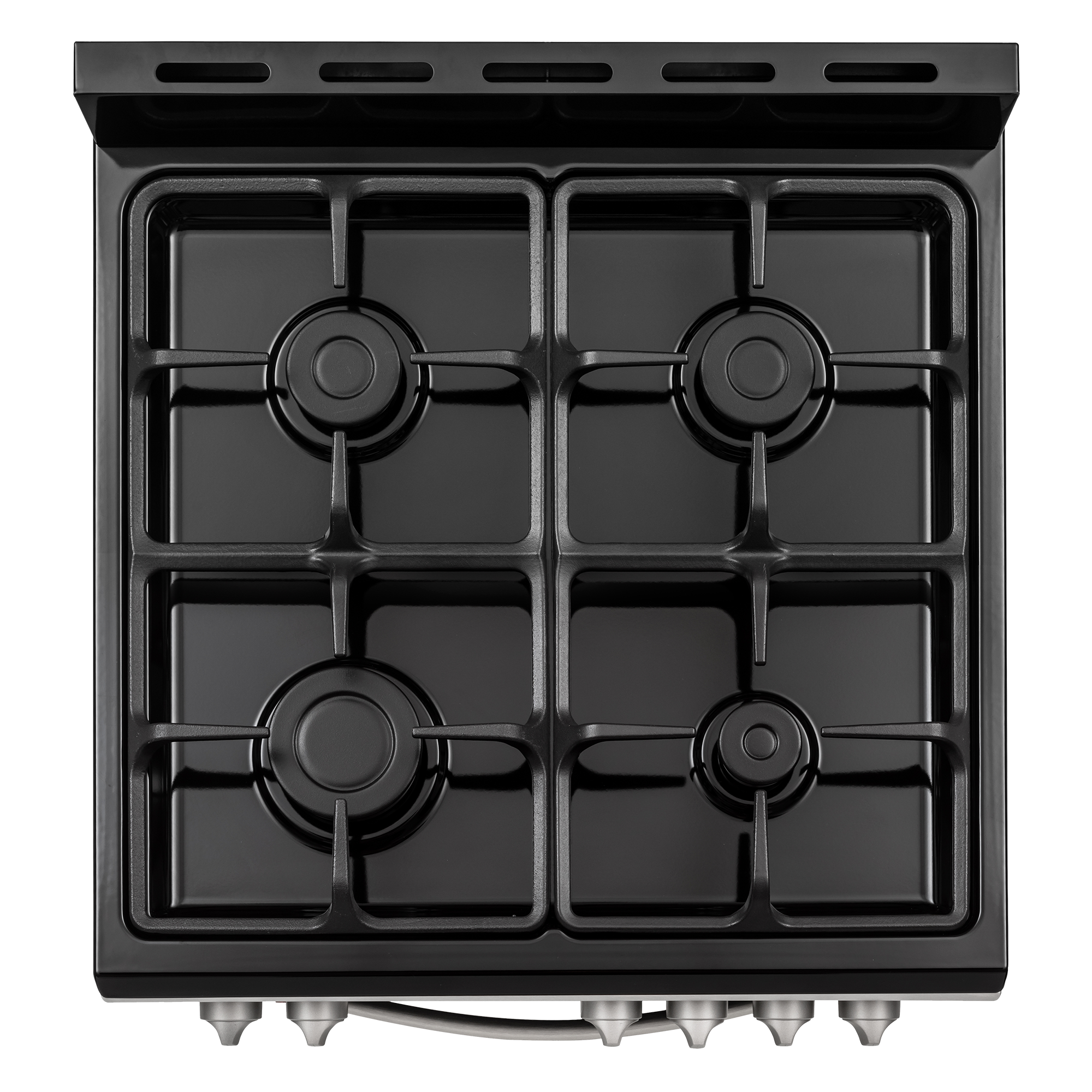 - CAST IRON GRATES - Heavy-duty cast iron grates provide stability and even heating for pots and pans of all sizes.