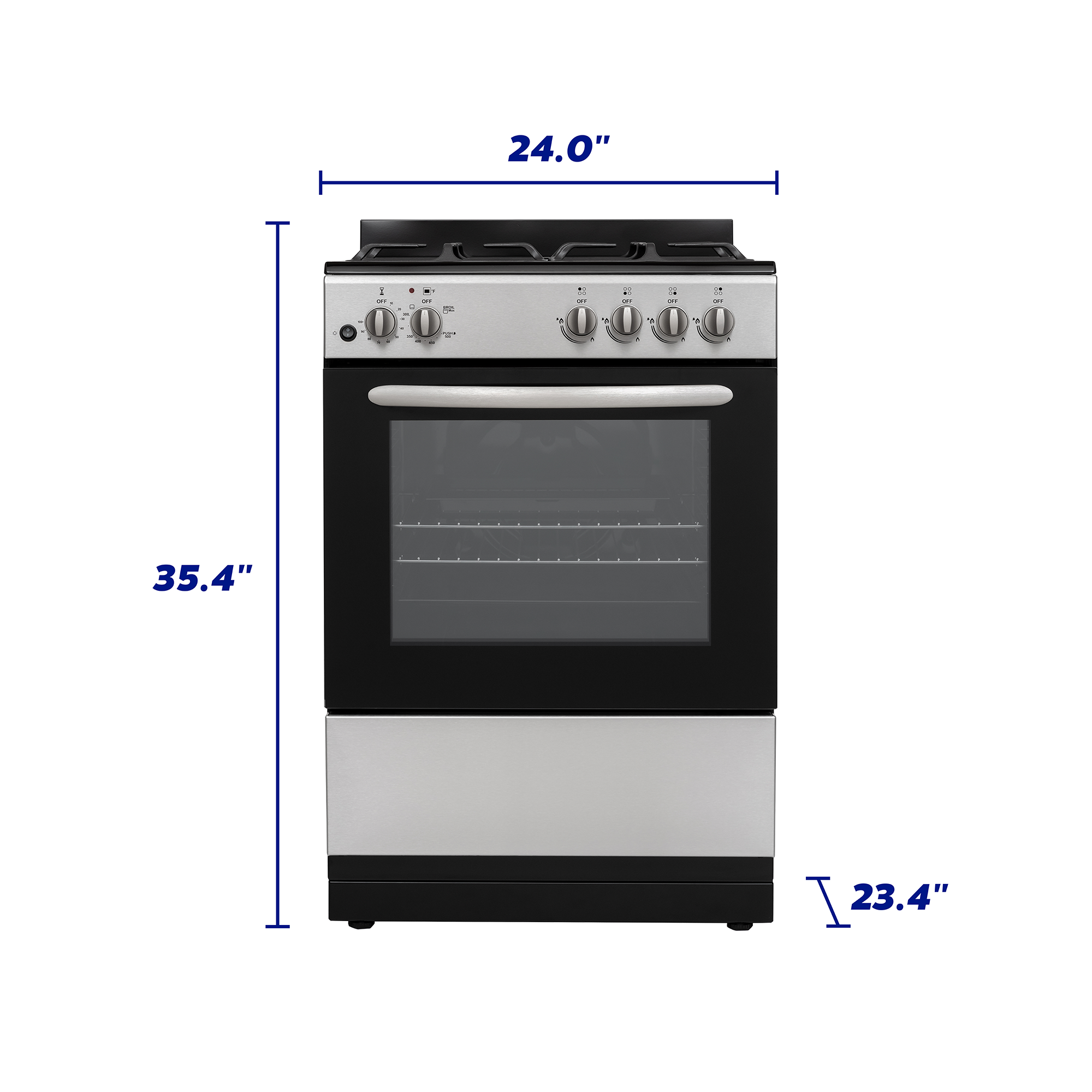 - ADJUSTABLE RACKS & STORAGE DRAWER - Two oven racks and a lower storage drawer give you flexible cooking and storage options.