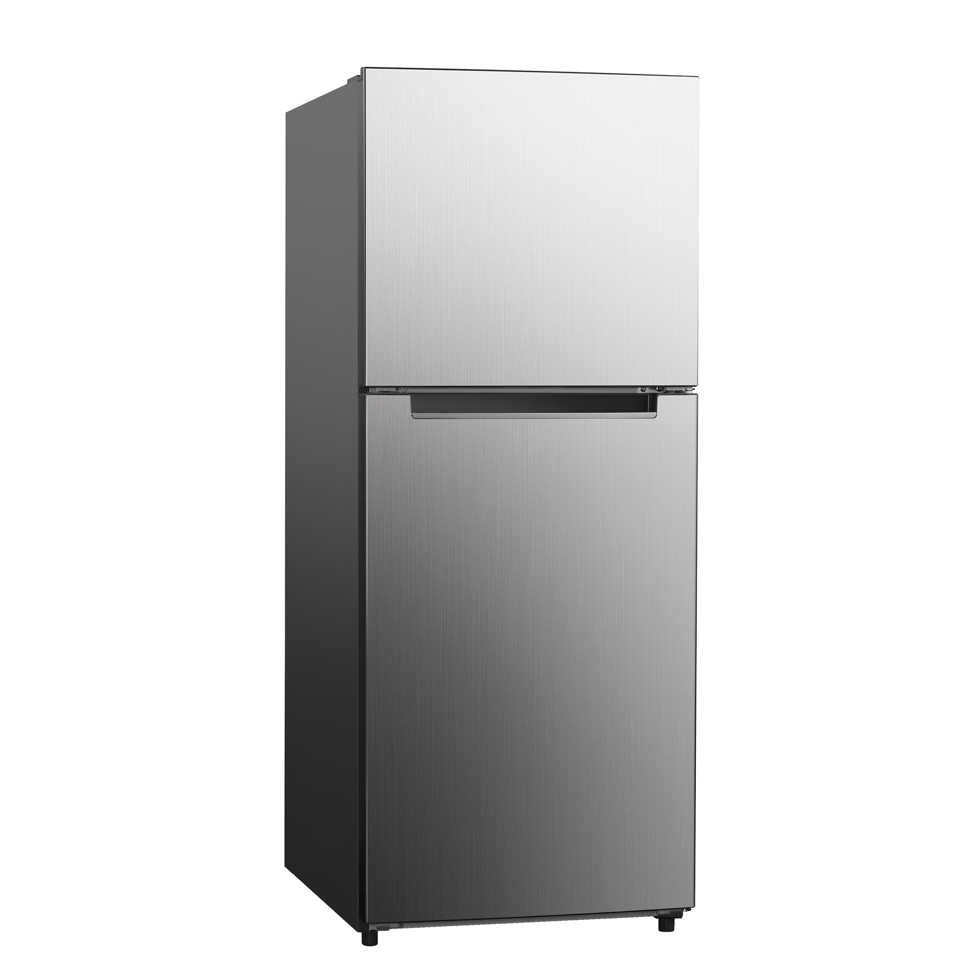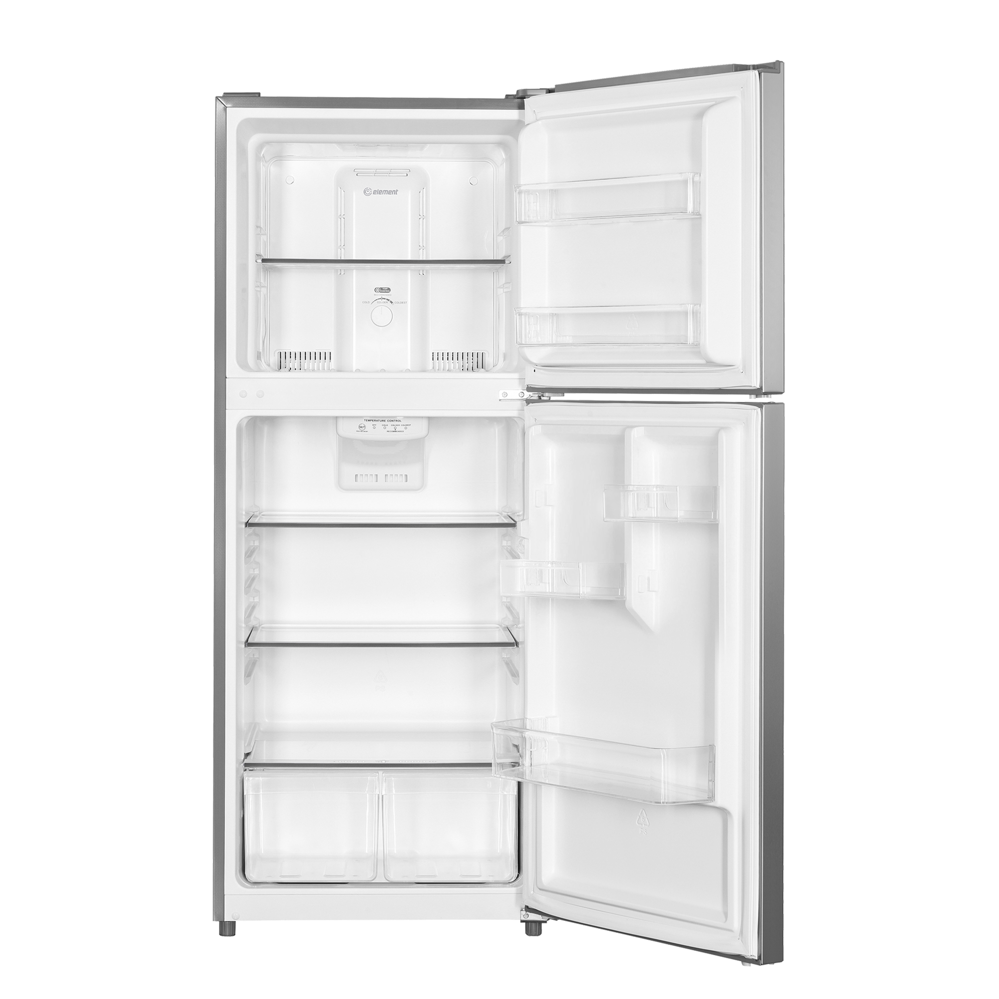 Element’s 10.1 cubic foot Top Freezer Refrigerator is perfect for your apartment, in-law suite, or other small space without sacrificing features. With two full-width adjustable glass shelves, you can customize its storage space to fit large or small containers easily. Plus, additional door storage keeps your drinks handy while freeing up valuable shelf space. One crisper drawer keeps your fruit, vegetables, and leafy greens delicious and ripe. Easily slide the humidity control setting for maximum freshness. LED interior lights emit minimal heat to help you conserve energy while grabbing a late-night snack. Element refrigerators use R600A refrigerant and are ENERGY STAR® certified, lessening energy usage while also being more eco-friendly.The freezer on top features a no-frost system, meaning your food won’t frost over. Plus, door bins give you easy access to your frozen goodies. The door on this refrigerator is reversible to fit your kitchen layout best, and the recessed handle creates a modern look while also saving space. The logo-less exterior and stainless steel finish allow it to blend with your current appliances seamlessly. Bring it home.