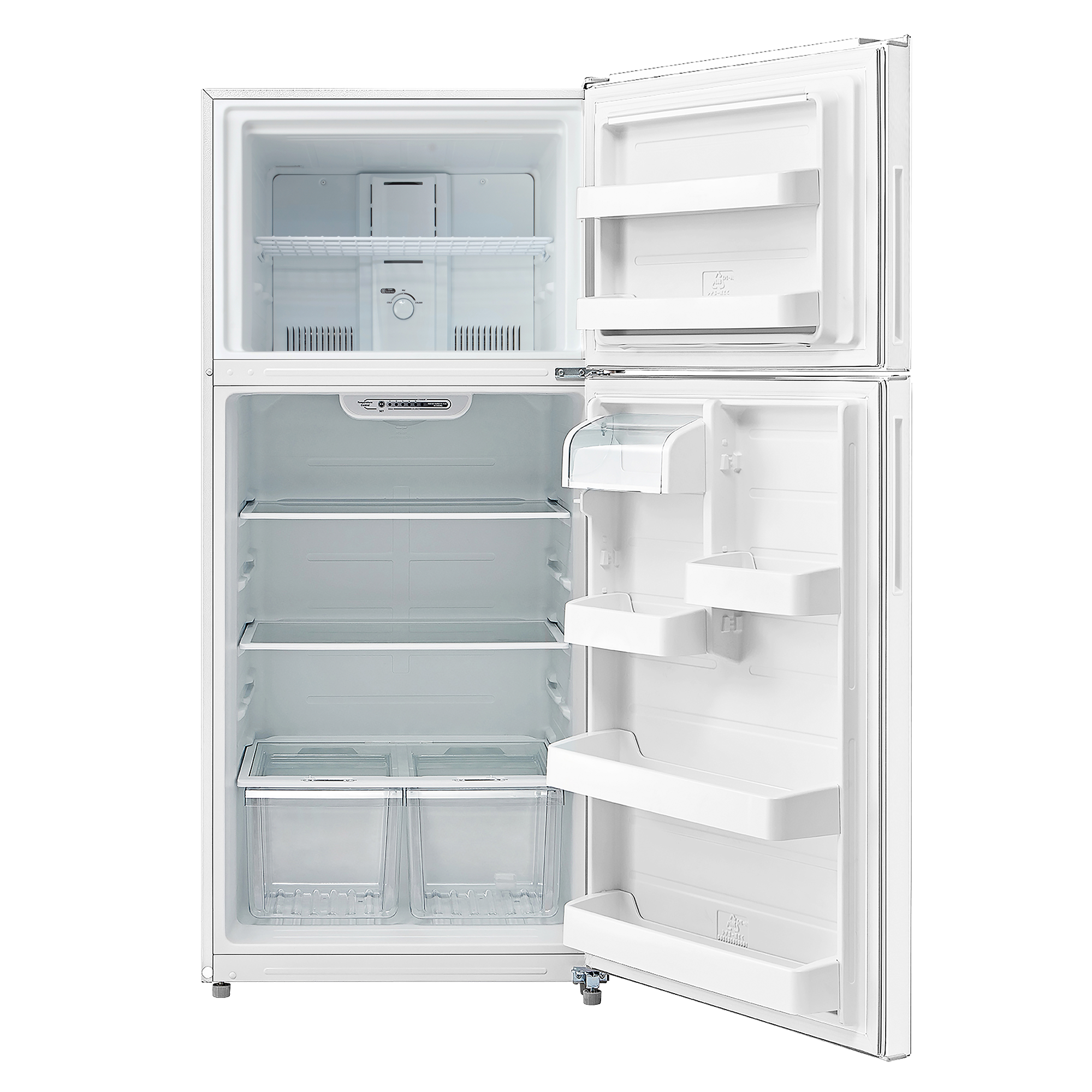 Element’s 18.0 cubic foot Top Freezer Refrigerator is perfect for storing your fresh and frozen foods. With two full-width adjustable glass shelves, you can customize its storage space to fit large or small containers easily. Plus, flexible door storage keeps your gallon-sized drinks handy while freeing up valuable shelf space. Two crisper drawers keep your fruit, vegetables, and leafy greens delicious and ripe. Easily slide the humidity control setting for maximum freshness. Element refrigerators use R600a refrigerant and are ENERGY STAR® certified, lessening energy usage while also being more eco-friendly.Element fridges’ recessed handle creates a modern look while saving space. Its door is reversible to fit your kitchen layout best. The logo-less exterior and white finish allow it to blend with your current appliances seamlessly. Element’s 18.0 cu. ft. refrigerators feature a no-frost system, so your food never frosts over; this reduces the chance for odors and freezer burn that can affect the taste of your food. Bring it home.