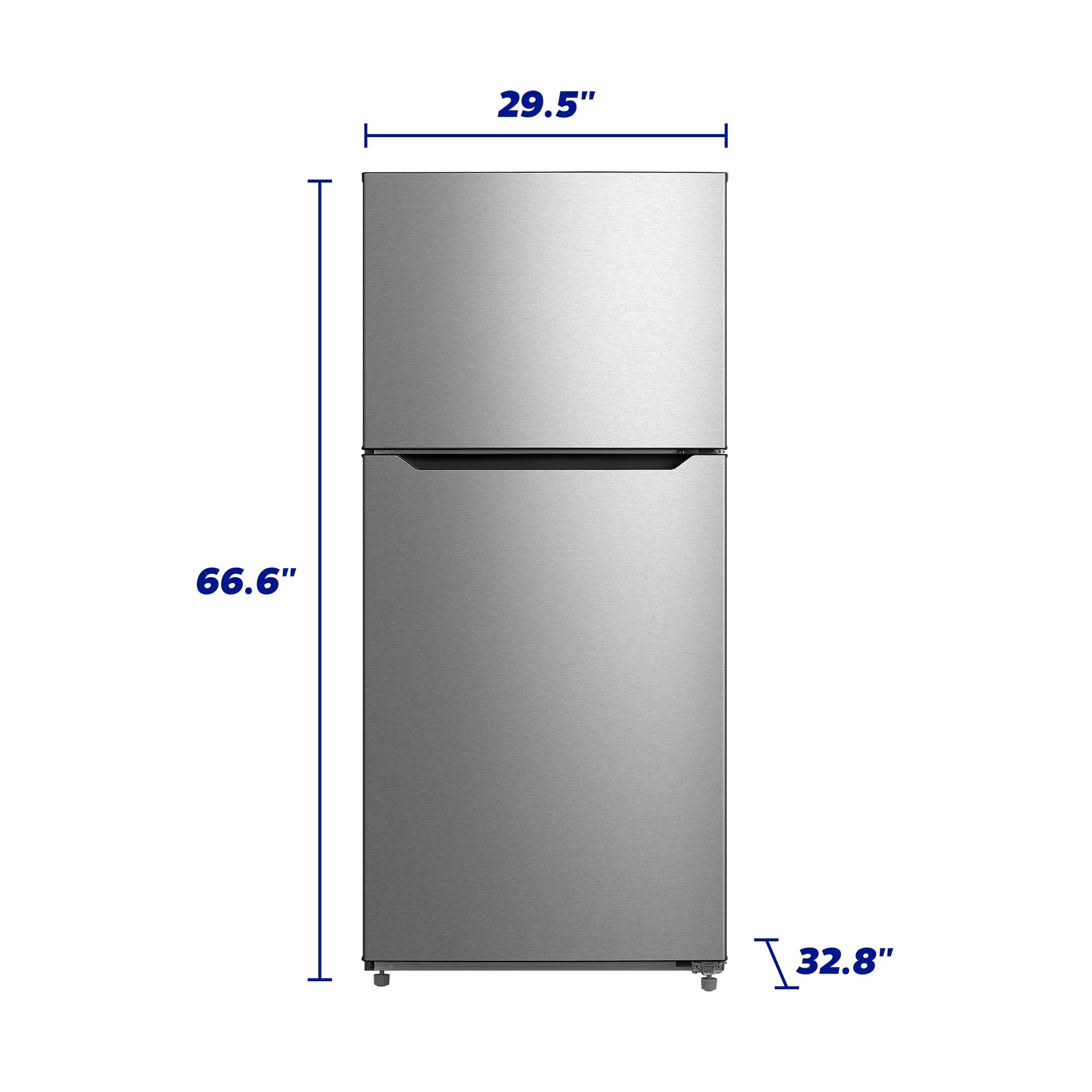 Element’s 20.5 cubic foot Top Freezer Refrigerator is perfect for storing your fresh and frozen foods. With two full-width adjustable glass shelves, you can customize its storage space to fit large or small containers easily. Plus, flexible door storage keeps your gallon-sized drinks handy while freeing up valuable shelf space. Two crisper drawers keep your fruit, vegetables, and leafy greens delicious and ripe. Easily slide the humidity control setting for maximum freshness. Element refrigerators use R600a refrigerant and are ENERGY STAR® certified, lessening energy usage while also being more eco-friendly. ADA Compliance ensures accessibility for everyone, reflecting Element's commitment to inclusivity.Element fridges’ recessed handle creates a modern look while saving space. Its door is reversible to fit your kitchen layout best. The logo-less exterior and stainless steel finish allow it to blend with your current appliances seamlessly. Element’s 20.5 cu. ft. refrigerators feature a no-frost system, so your food never frosts over; this reduces the chance for odors and freezer burn that can affect the taste of your food. Bring it home.