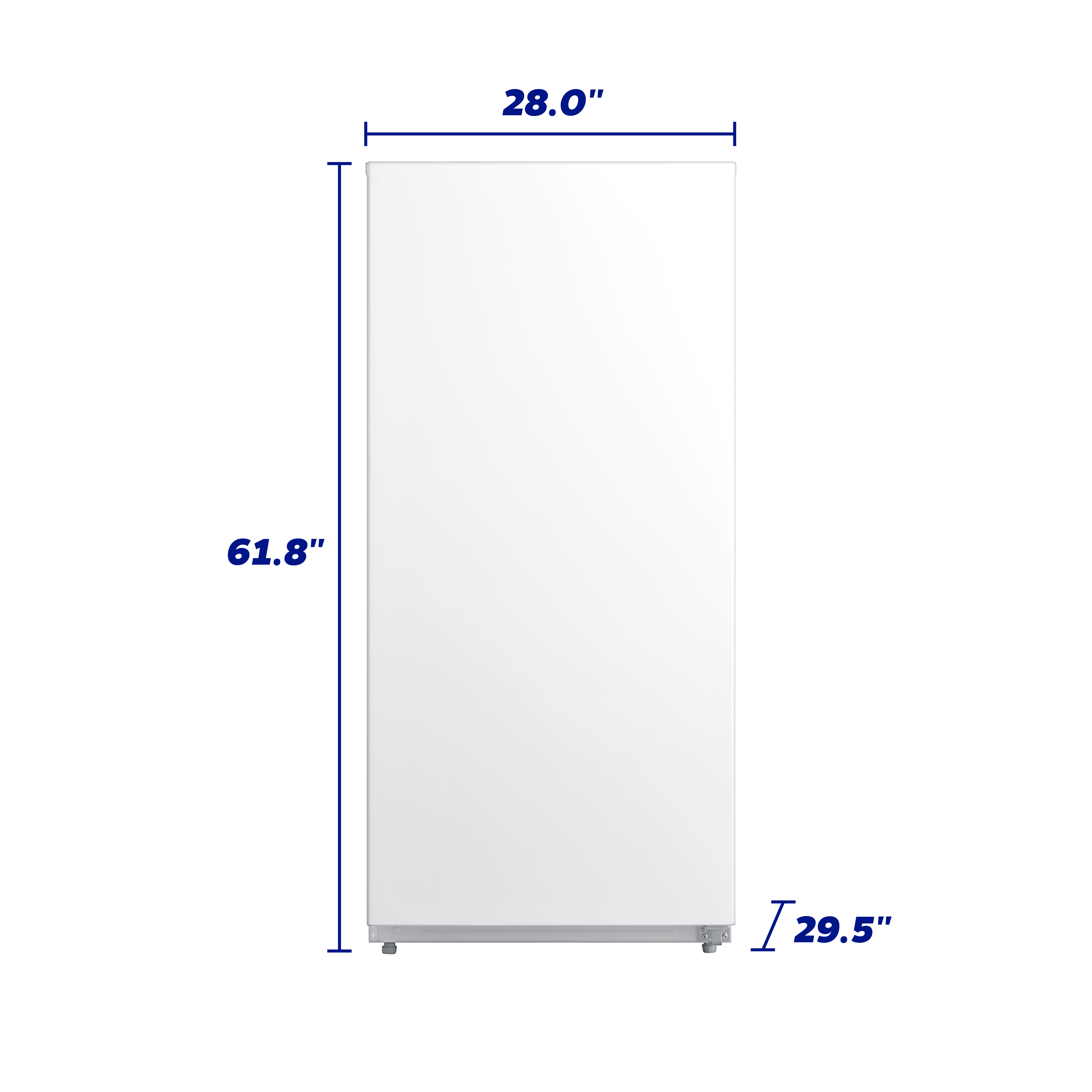Element's 13.8 cu. ft. Upright Freezer gives you more space for all of your frozen favorites. It’s perfect for your garage, basement, kitchen, utility room, or even man cave — wherever you need easy access to your favorite frozen foods. With four adjustable shelves, you can customize its storage space to fit large or small containers easily. It can be converted from a freezer to a refrigerator with a simple electronic control. Plus, it's garage ready, making it perfect for storing popsicles in the summer.The logo-less exterior and white finish on Element’s 13.8 cu. ft. upright freezer allow it to match any space seamlessly. It features an interior light for grabbing a late-night snack. Element’s upright freezer uses a no-frost system, so your food never frosts over. This reduces the chance for odors and freezer burn that can affect the taste of your food. It comes Department of Energy certified to keep your electricity bills down. Bring it home.