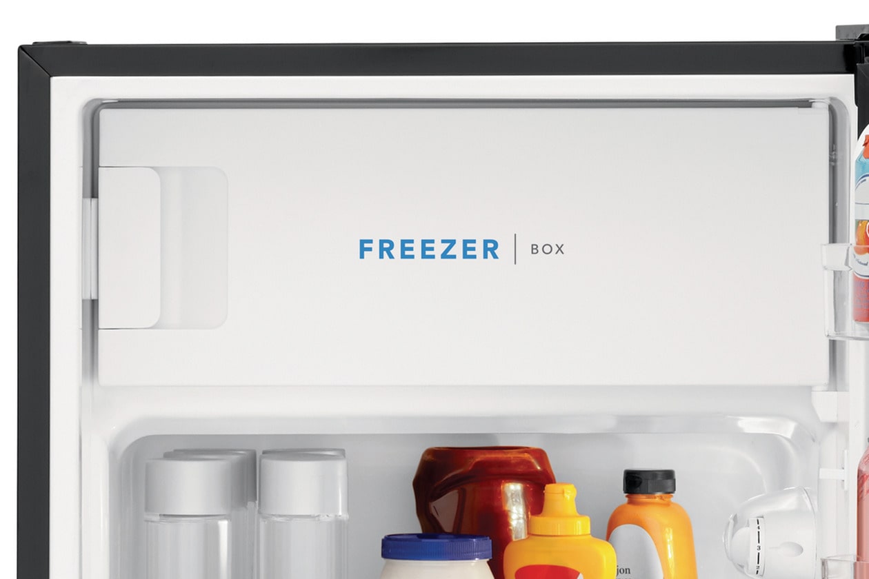 The Frigidaire 4.5 Cu. Ft. Compact Refrigerator is the perfect addition to any dorm room or home entertainment space, with a reversible door that allows you to install it just about anywhere. Easily accommodate your favorite beverages and chilled snacks with adjustable glass shelves, a gallon door bin, and a chill zone for frozen foods. Plus, our bright interior lighting makes it easy to find what you're looking for.