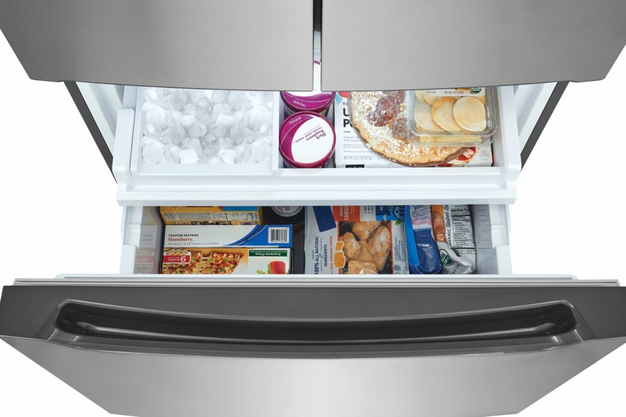 This Frigidaire 33" French Door refrigerator with an internal water dispenser keeps produce fresh for longer with our CrispSeal® crispers and has a place for everything with our flexible organization system.