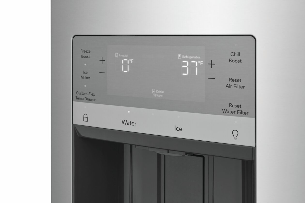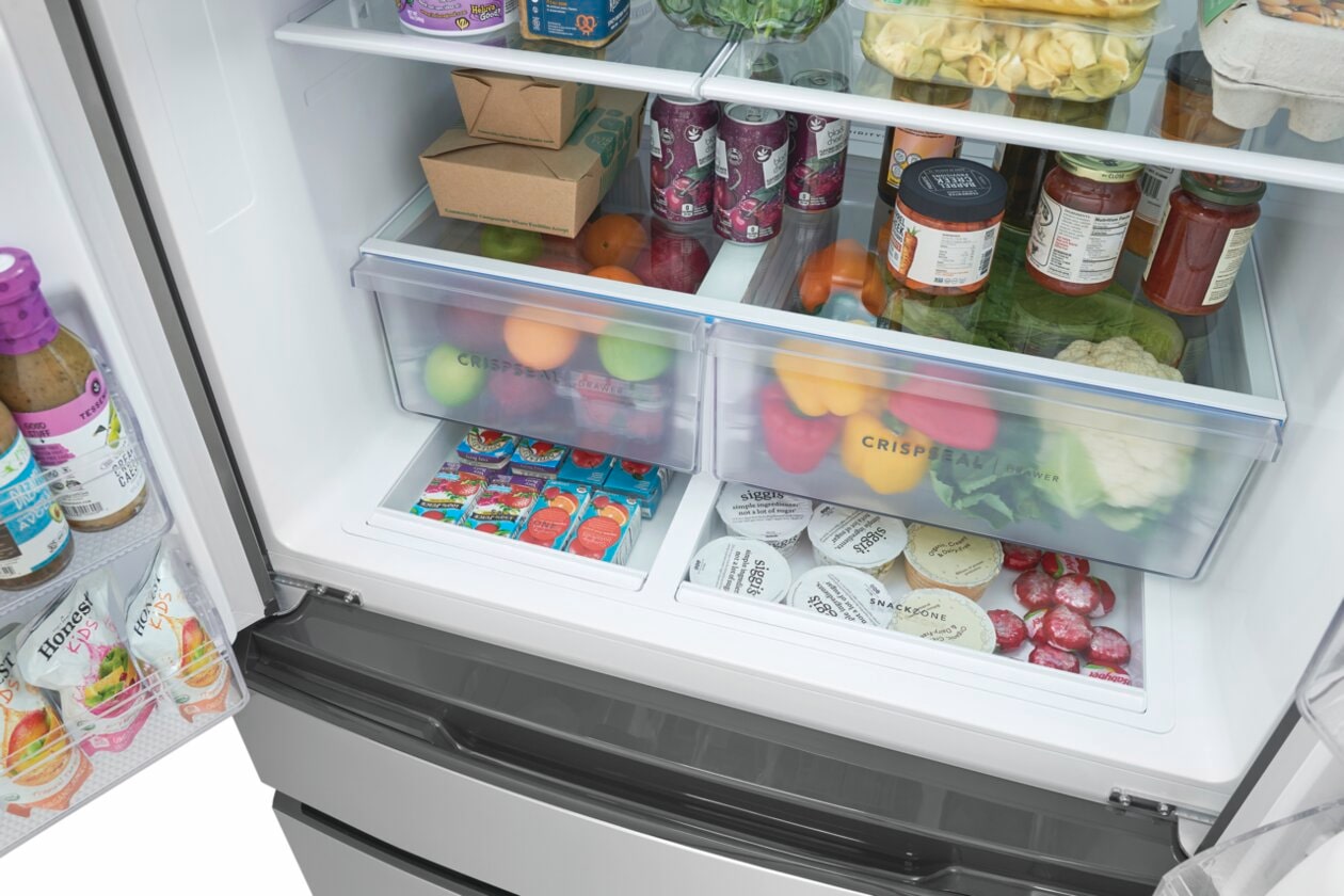 This Frigidaire 4-Door French door refrigerator offers the Custom-Flex® Temp Drawer, that fully switches from fridge to freezer, so you can store all your family favorites from yogurt to frozen pizza. It's easy to find a place for everything with our SpaceWise® Organization System and large door bins. Plus, keep fruits and vegetables fresh longer with CrispSeal® crispers with Auto-Humidity.