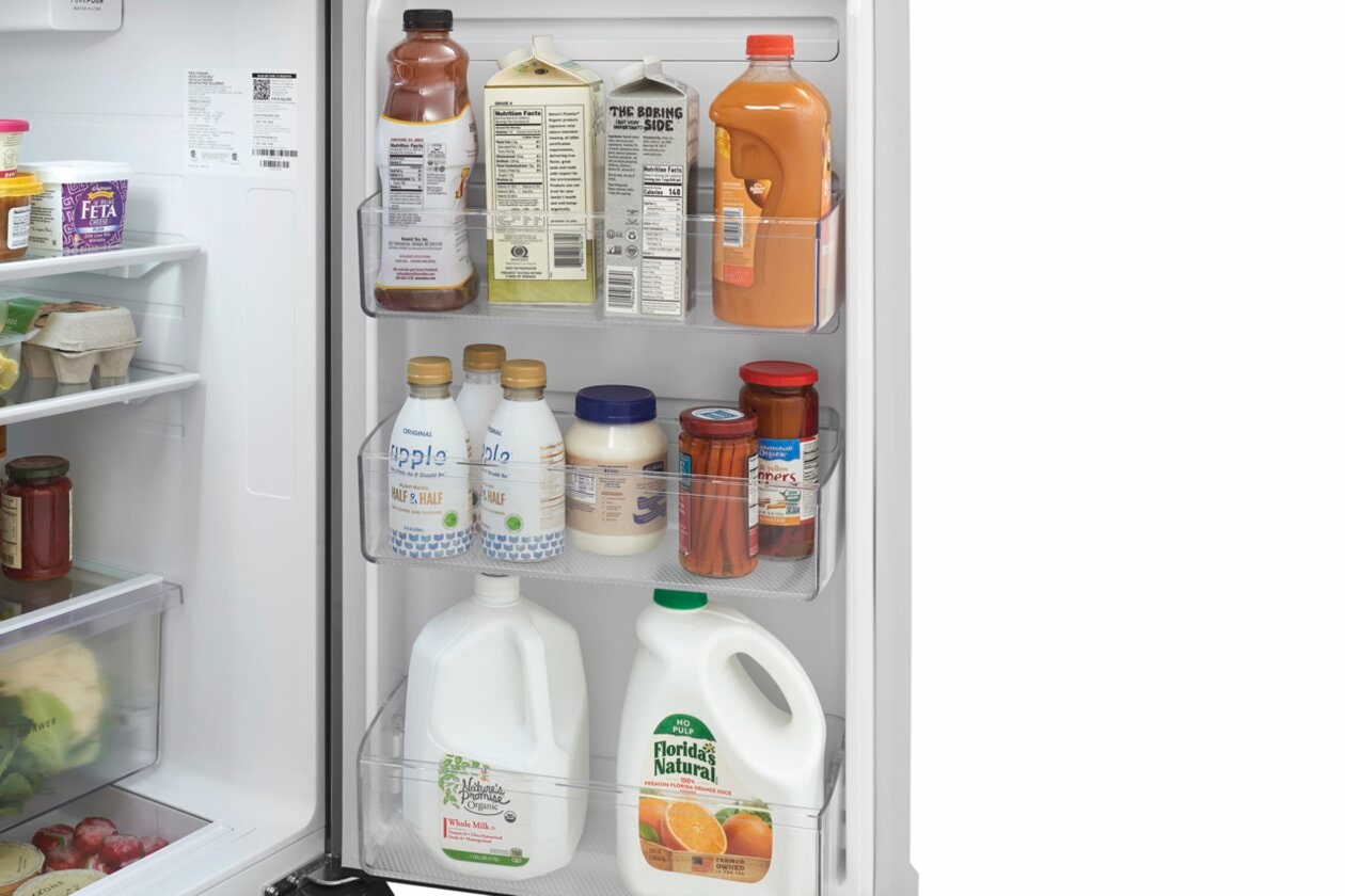 - Our adjustable gallon-size bins are designed to store more, so you can fit a variety of items like condiments and milk.