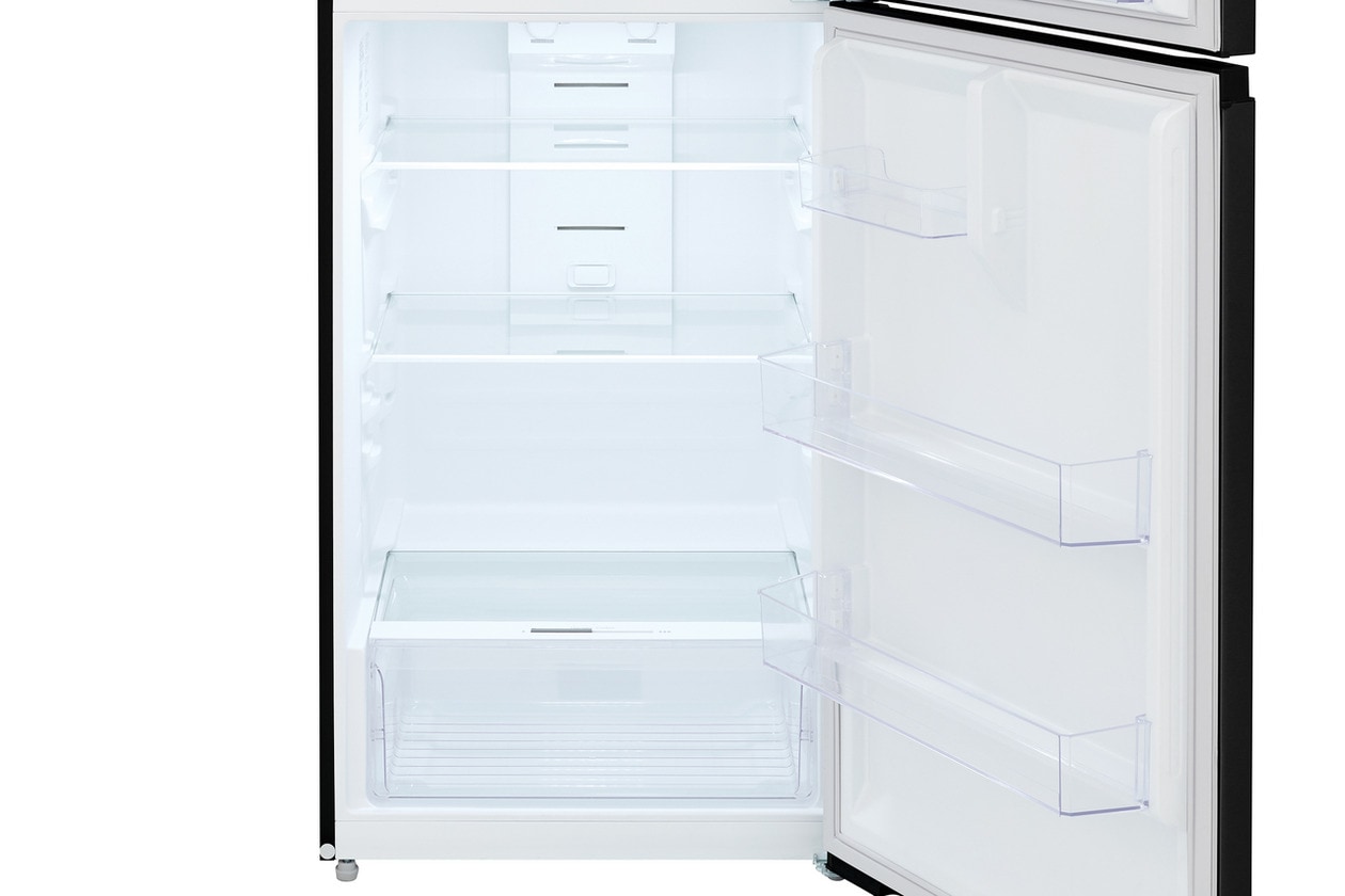 This Frigidaire 16 cubic foot top freezer refrigerator includes spacious interior storage options designed for busy families, including three glass shelves, two gallon door bins, and full-width freezer shelf. Additionally, the bright LED lighting makes it easier to see what’s inside.