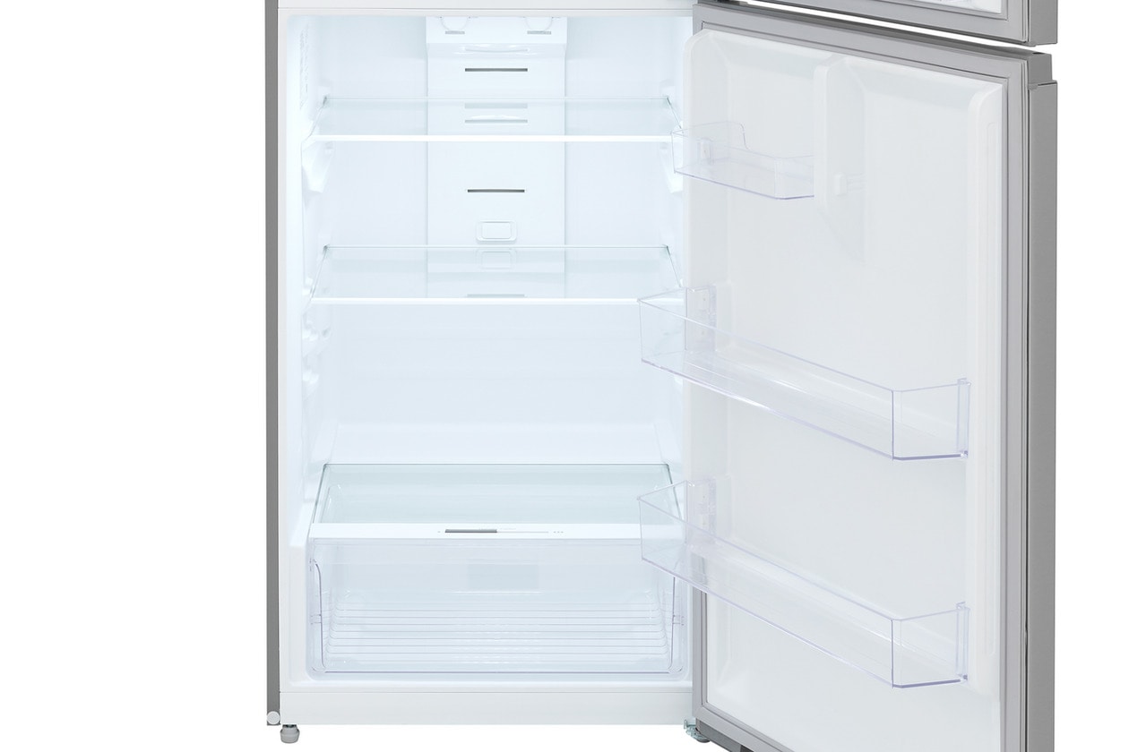 This Frigidaire 16 cubic foot top freezer refrigerator includes spacious interior storage options designed for busy families, including three glass shelves, two gallon door bins, and full-width freezer shelf. Additionally, the bright LED lighting makes it easier to see what’s inside.