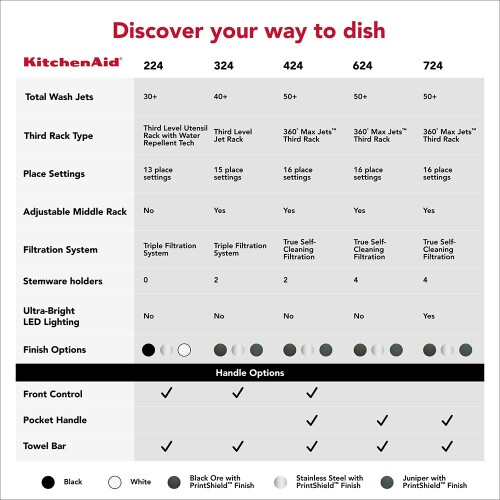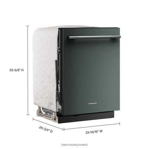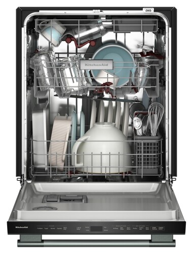 Say hello to the only way to dish. This Top Control Dishwasher with a Towel Bar Handle has 50+ Total Wash Jets across 4 wash arms that offer targeted cleaning across the entire 7.25 cu.ft. MaxTub Largest Dishwasher Tub*. 360° Max Jets™ Third Rack uses 360° wash jets to clean glasses, mugs and bowls. Advanced ProDry™ System serves up KitchenAid brand's driest dry. True Self-Cleaning Filtration eliminates manual filter cleaning by continuously circulating clean water during wash and rinse cycles.