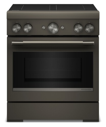 This KitchenAid® 4.1 cu. ft. 30-inch 4-Element Induction Slide-In Convection Range combines the precision of induction with the power of Air Fry. Sensor-induction cooktop generates heat directly within cookware, and the oven features Even-Heat™ True Convection plus air fry mode that aids in crisping and browning.