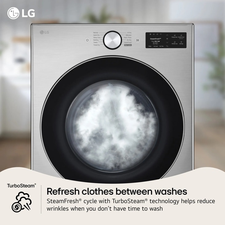- SteamFresh™ Cycle with TurboSteam™ Technology refreshes clothes in between washes
