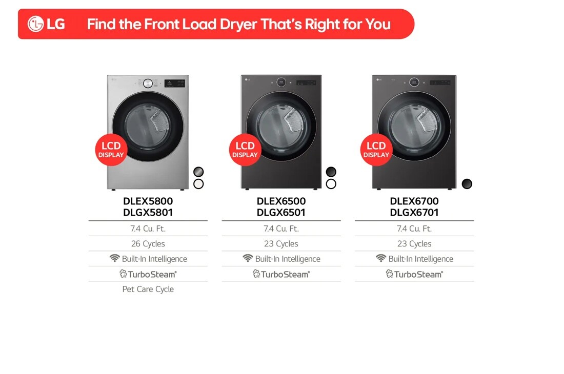 7.4 cu. ft. Ultra Large Capacity Smart Front Load Electric Dryer with TurboSteam, AI Sensing and Hybrid Electronic Controls with LCD Display