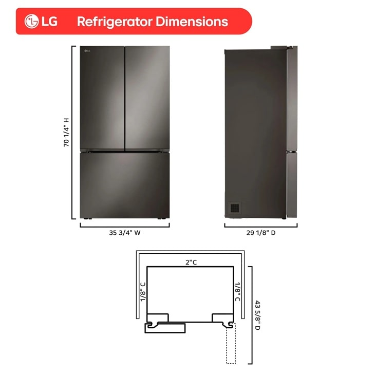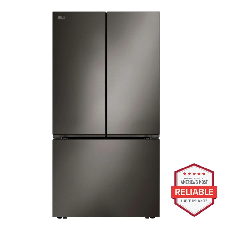 36" Wide, 27 cu ft. 3 Door French Door, Pocket Handle, C/Depth Refrigerator with Internal Water Dispenser, PrintProof Black Stainless Steel
