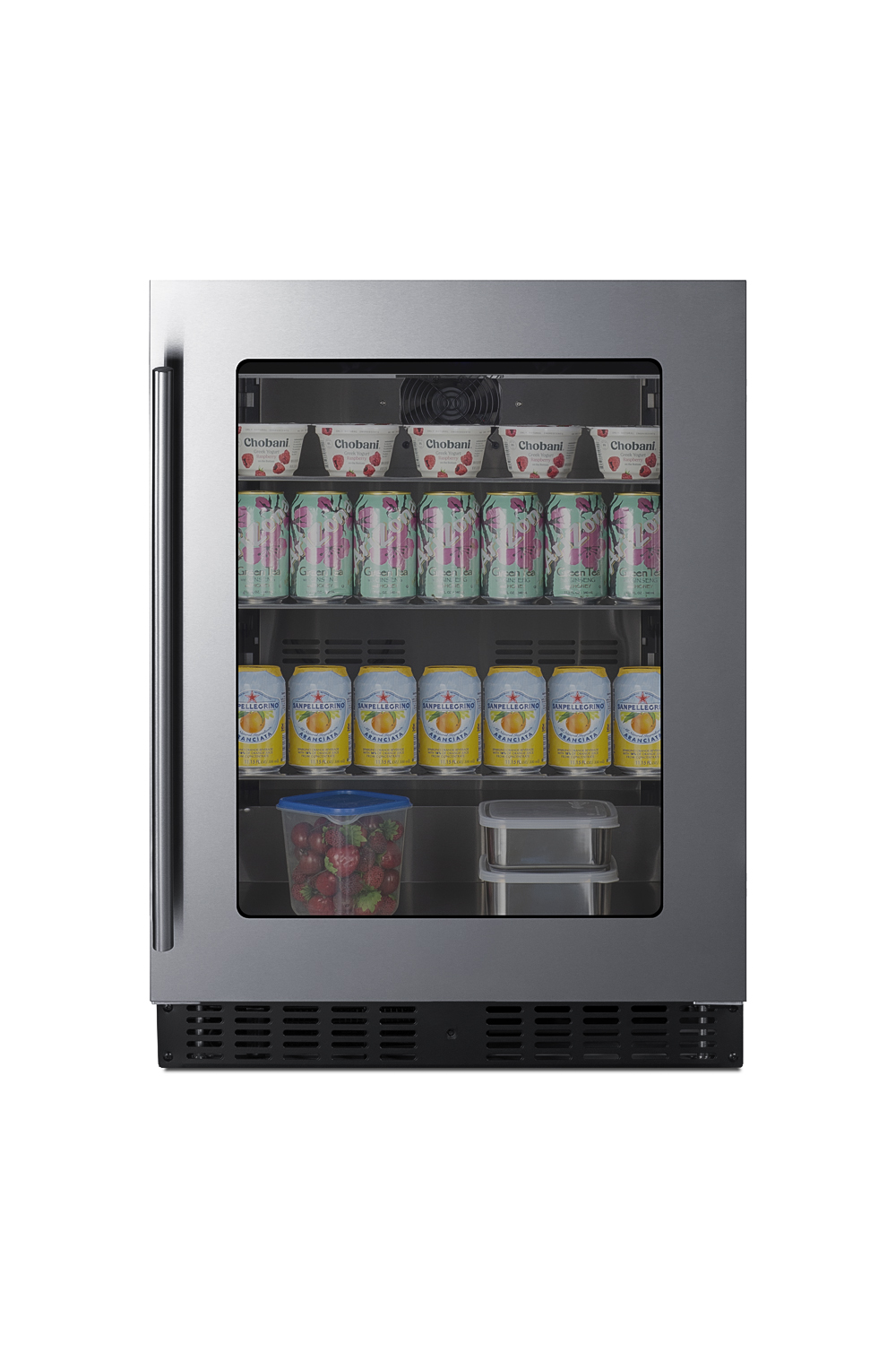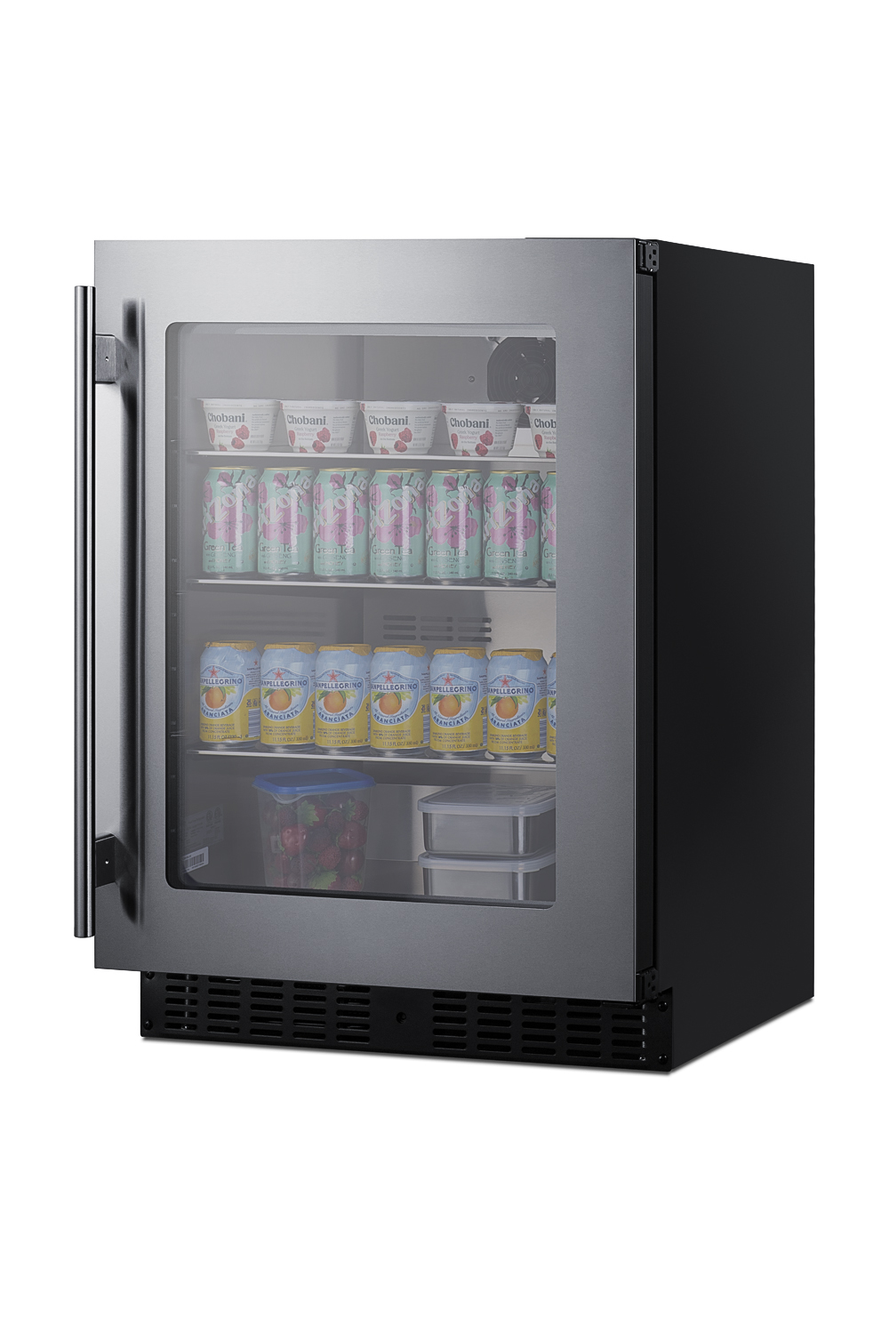 Summit's shallow depth series of built-in undercounter refrigeration brings full functionality to kitchen islands, wet bars, and other settings with space limitations.Model ASDG2411 is a 24" wide beverage refrigerator sized under 18" deep. It comes in a 32" height to fit under lower ADA compliant counters, with adjustable legs and a sliding kickplate cover that also allows you to raise the overall height up to 34" to fit standard counter spaces. The front-breathing system allows built-in installation, while the fully finished black cabinet also allows freestanding use. Seamless stainless steel trim blends smoothly into the double pane tempered glass door for an elevated look, with a professional stainless steel handle included. This unit has a sealed rear and right angle cord for a better fit. The door is user-reversible and includes a front lock.Inside, the ASDG2411 features stainless steel construction for improved durability and sanitation. Fan-forced cooling ensures even temperature distribution and fast temperature recovery. This unit includes an LED strip on each side of the interior cabinet, with dimmable settings in a gentle white hue that lets you create the perfect display conditions. A commercial grade cantilevered shelving system with glass shelves ensures flexible storage to accommodate any size. Additional features include an open door alarm, high temperature alarm, and Sabbath mode setting that lets you disable some of the electrical elements during periods of observance.The ASDG2411 is ETL-S listed to NSF-7 commercial standards but can also be used in the home. With its deluxe style, user-friendly features, and uniquely shallow depth, this unit offers premium value for a variety of settings. Create a matching set by pairing this with our ASDW2412 wine cellar. Additional 18" deep choices are available in 15", 19", and 24" widths, including outdoor refrigerators, refrigerator drawers, wine cellars, and more.