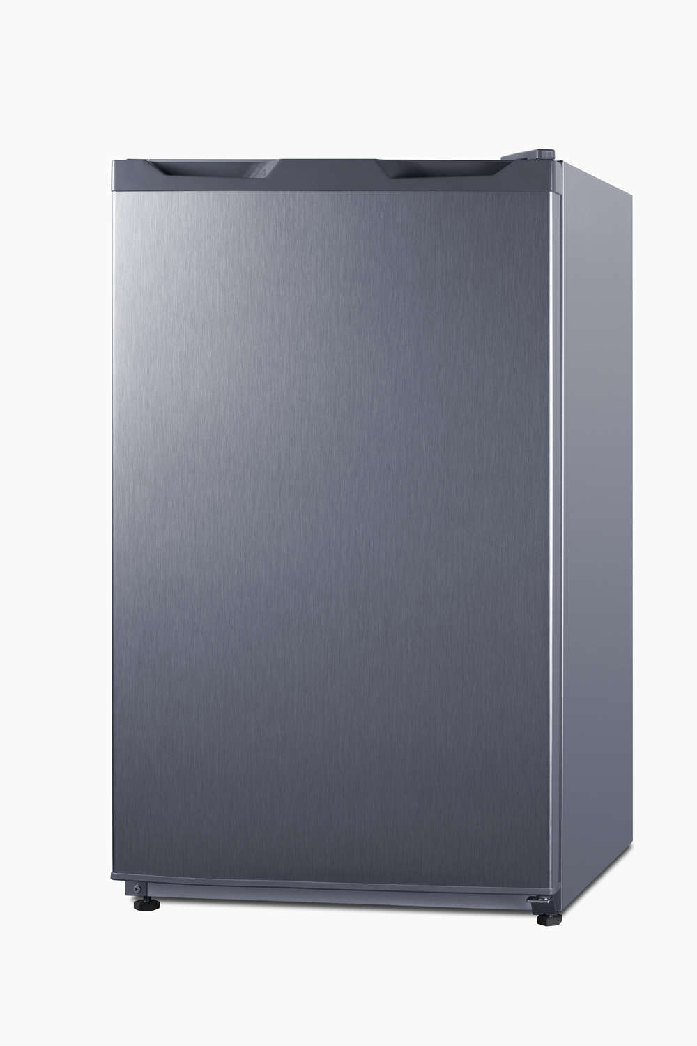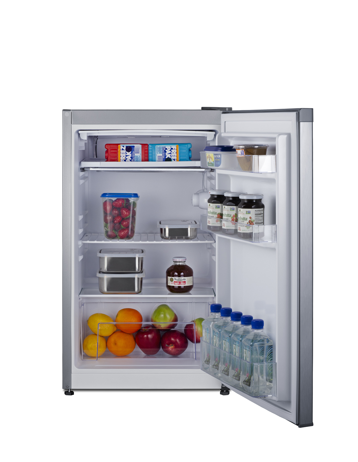 Summit's series of compact and ADA height refrigerator-freezers offers ideal choices for use in hotels, dorm rooms, and offices.Made in Europe, model CM42PLADA is a freestanding refrigerator-freezer sized at just 19" wide. The overall 32.25" height allows use in facilities complying with ADA guidelines for lower counters. It has a smooth cabinet in a stainless steel look with a vertical grain. The door is is user-reversible for versatile placement. Inside, the CM42PLADA offers a generous 3.1 cu.ft. of storage capacity, which includes a large refrigerator section illuminated by LED lighting. Manual defrost operation for the upper freezer compartment helps to ensure efficiency. The refrigerator section includes one adjustable shelf and three door racks ideal for storing condiments and cans. The large crisper drawer for produce storage. The upper freezer compartment is designed to store ice packs and ice cubes. The dial thermostat offers easy temperature management.This refrigerator-freezer features a SuperFreeze setting, which is perfect for quickly cooling newly loaded items. Another included function is summer/winter mode, which adjusts the unit's overall operations to enhance performance in hot or cold environments to provide consistent and optimal cooling year-round.With its slim-fitting footprint and intuitive design, the CM42PLADA is the ideal solution for student housing, hotel rooms, offices, and other settings with limited space. Additional choices are available for built-in installation, as well as endless variations in ADA height. Visit summitappliance.com to explore all of our compact and undercounter refrigerator-freezers.