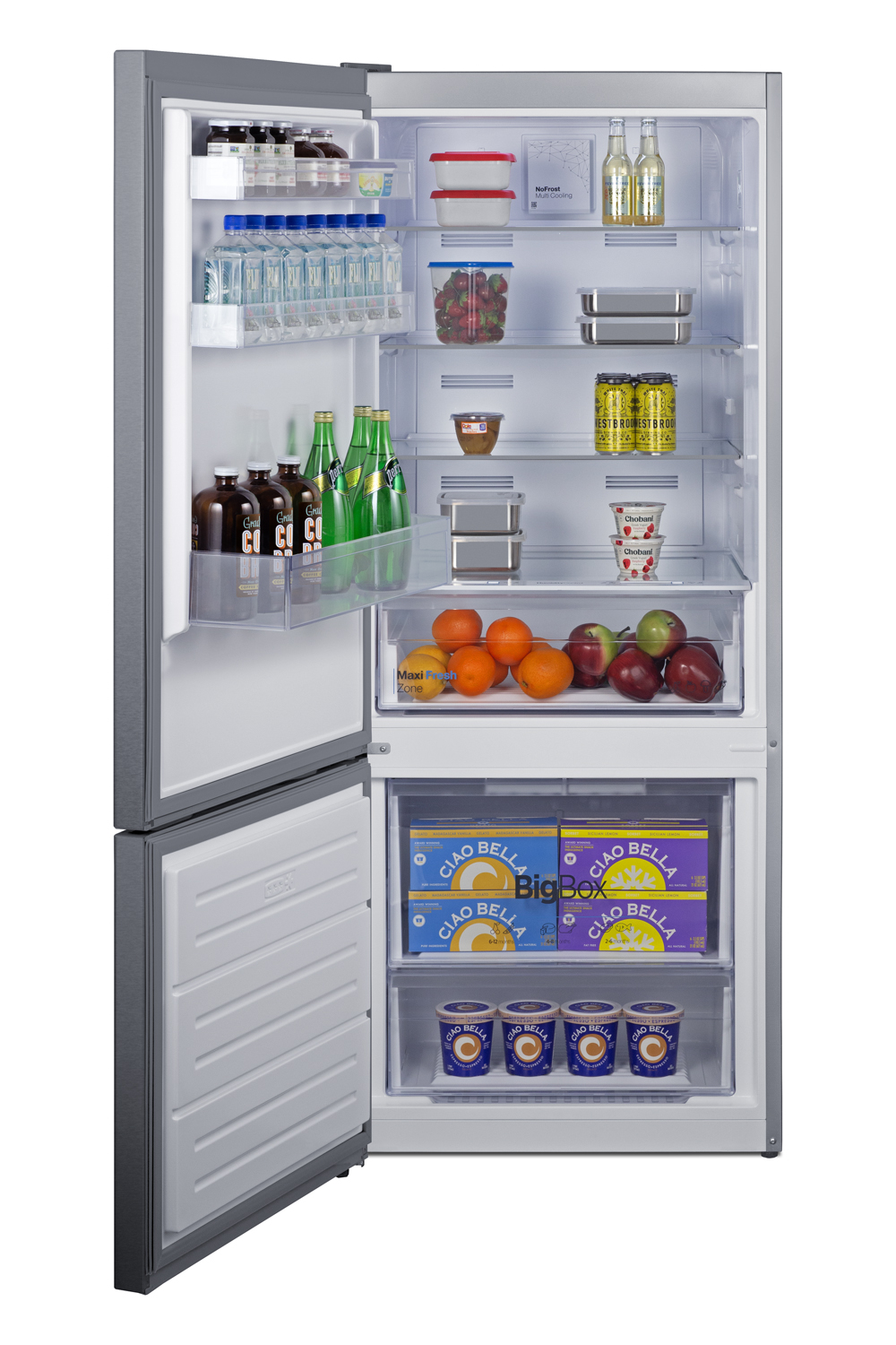 Summit's fully-featured, European-made bottom freezer refrigerators are specially designed to bring true convenience to any kitchen. The ENERGY STAR certified FFBF154SSHD is conveniently sized at 27.5" wide and just under 28" deep. Stainless steel doors feature a pocket handles and an attractive horizontal grain, with a smooth silver cabinet for a stylish modern look in any kitchen. The sealed back offers added space savings and easier cleanup. This unit comes with a left hand door swing. Inside, the FFBF154SSLHD boasts a generous 15.1 cu.ft of storage space to meet the storage needs of any family, no matter the size. This model utilizes frost-free operation for low maintenance use. The digital controls ensure easy and intuitive temperature management. The fresh food section has LED lighting for an attractive, energy-efficient view. The interior includes three adjustable glass shelves and a full-width, humidity-controlled crisper drawer for easy produce storage. The door includes three full shelves to safely store bottles and other condiments. The bottom rack accommodates gallon-sized containers. The FFBF154SSLHD's large freezer section features two plastic slide-out drawers that help protect your stored items from warmer temperatures when the door is opened. A SuperFreeze setting lets you run the freezer at colder temperatures, ideal for freezing newly loaded groceries. With its ENERGY STAR certified performance, attractive design, and convenient features, the FFBF154SSLHD is the ideal choice for apartments looking for an energy-efficient refrigerator-freezer. For this unit in a classic white finish, see model FFBF151WLHD.Explore summitappliance.com to browse our complete series of apartment-sized refrigerators.