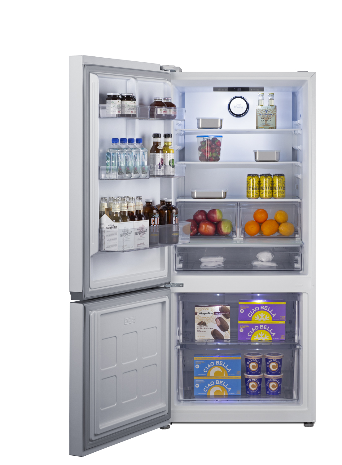 Summit's fully-featured, bottom-mount refrigerator-freezers are specially designed to bring modern style and true convenience to any kitchen. The ENERGY STAR certified FFBF172WLHD is conveniently sized at 30" wide. Classic white doors feature pocket handles, with a smooth white cabinet for a timeless look in any kitchen. The sealed back offers added space savings and easier cleanup. This unit ships with a left-hand door swing.Inside, the FFBF172WLHD boasts a generous 16.1 cu.ft of storage space to meet the storage needs of any family, no matter their size. This model utilizes frost-free operation for low user maintenance. The interior includes three adjustable glass shelves, two half-width produce crisper drawers, and a full-width deli drawer for easy storage. The refrigerator door includes four half shelves and one full gallon shelf to safely store bottles and other condiments. An innovative digital system lets you manage the refrigerator and freezer temperature with an intuitive digital thermostat. LED lighting in the side walls of the refrigerator offers an efficient and attractive view inside. The open door alarm alerts with an audio and visual signal when the door is left ajar for over one minute. This unit is equipped with an optional sabbath mode feature that allows you to deactivate certain electrical features for up to 72 hours.The FFBF172WLHD's large freezer section features one plastic slide-out drawer that help protect your stored items from warmer temperatures when the door is opened. A QuickFreeze setting lets you run the freezer at colder temperatures, ideal for freezing newly loaded groceries. With its ENERGY STAR certified performance, attractive design, and convenient features, the FFBF172WLHD is the ideal choice for kitchens looking for an energy-efficient refrigerator-freezer. For this unit in a stainless steel finish, see model FFBF173SSLHD. For this unit in a stainless steel finish with a factory-installed icemaker, see model FFBF174SSIMLHD.