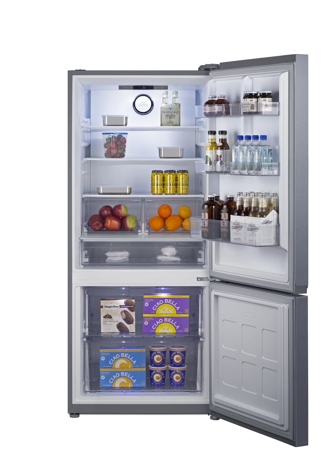 Summit's fully-featured, bottom-mount refrigerator-freezers are specially designed to bring modern style and true convenience to any kitchen. The ENERGY STAR certified FFBF173SS is conveniently sized at 30" wide. Stainless steel doors feature pocket handles and an attractive horizontal grain, with a smooth silver cabinet for a stylish modern look in any kitchen. The sealed back offers added space savings and easier cleanup. Both doors are user-reversible to best suit your space.Inside, the FFBF173SS boasts a generous 16.1 cu.ft of storage space to meet the storage needs of any family, no matter their size. This model utilizes frost-free operation for low user maintenance. The interior includes three adjustable glass shelves, two half-width produce crisper drawers, and a full-width deli drawer for easy storage. The refrigerator door includes four half shelves and one full gallon shelf to safely store bottles and other condiments. An innovative digital system lets you manage the refrigerator and freezer temperature with an intuitive digital thermostat. LED lighting in the side walls of the refrigerator offers an efficient and attractive view inside. The open door alarm alerts with an audio and visual signal when the door is left ajar for over one minute. This unit is equipped with an optional sabbath mode feature that allows you to deactivate certain electrical features for up to 72 hours.The FFBF173SS's large freezer section features one plastic slide-out drawer that help protect your stored items from warmer temperatures when the door is opened. A QuickFreeze setting lets you run the freezer at colder temperatures, ideal for freezing newly loaded groceries. With its ENERGY STAR certified performance, attractive design, and convenient features, the FFBF173SS is the ideal choice for kitchens looking for an energy-efficient refrigerator-freezer. For this unit in classic white, see model FFBF172W. For this unit with a factory-installed icemaker, see model FFBF174SSIM.
