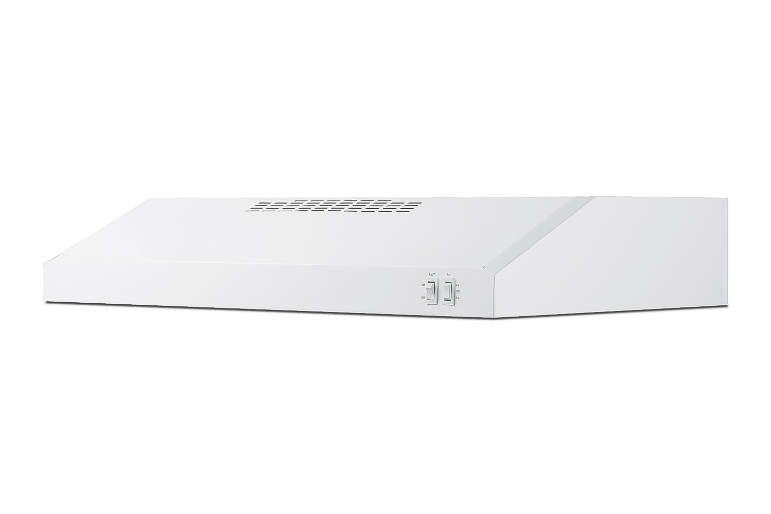 Summit's selection of specialty appliances includes accessible range hoods specially designed to be installed in compliance with Section 308 and 309 of the ADA Guidelines.Model HC30WWADA is a 30" wide range hood ideal for apartments, senior living kitchens, hotel suites, and other smaller spaces. It comes in a classic white finish constructed from 21 gauge galvanized steel for a clean look and durable design. We include a remote terminal block and wall switch cover to allow the controls to be installed separately from the hood and at a lower, accessible height in accordance with ADA guidelines. The fan can be set at a high or low setting to best meet your ventilation needs. This unit can operate at 300 CFM for thorough ventilation. Airflow is directed upwards at a slight angle, ensuring smoke and odors won't blow towards the home chef.This hood ships for ductless/recirculating ventilation (where no exhaust connection to the outside is available) but is convertible for horizontal or vertical ducted ventilation (3 1/4" x 10" rectangular ducting or 7" round, transition required). We include a combination aluminum mesh/charcoal filter to absorb grease, smoke, and odors. This unit accepts a standard light bulb (not included). Both the filter and lens cover snap in place, with no tools required to change out as needed. Note: this hood does not include a power cord and is designed to be hard-wired by a licensed professional. In addition to this ADA compliant range hood, Summit manufactures this series in additional colors, as well as shell hoods and wall-mounted European hoods. Browse the full Summit product line to explore your options.