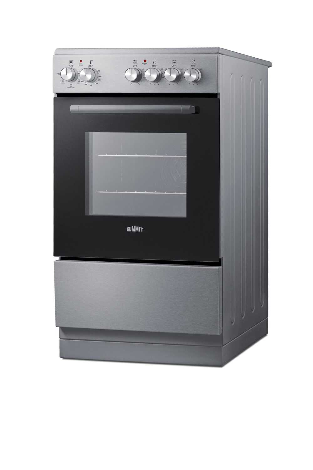 Summit's innovative series of European-made ranges offers full cooking convenience for apartments, ADUs, tiny homes, and other settings with limited kitchen space. Made in Europe, the REXT20SS is a 220V electric range sized at just under 20" wide with a depth under 24" making it ideal for L or U-shaped kitchens. For safer heating and easier clean-up, these units feature a smooth glass cooking surface. There are four 6" burners to ensure this unit can accommodate everyday cooking needs.The versatile design includes a removable 2" high matching stainless steel backguard, allowing you the choice of a standard range style or a slide-in look with a flat surface that allows you to better integrate the unit with your own backsplash design. For added space savings, the REXT20SS features a slide-out drawer, perfect for storing your pots and freeing up more kitchen space.Inside, the REXT20SS features a large 1.87 cu.ft. oven made from durable porcelain enamel and includes two sliding wire racks with five positions to let you fit various dish sizes. The large oven window provides a full view of your cooking, with an interior light that automatically turns on with the oven. The oven door is constructed from low-e glass in black for a modern look, with a sleek stainless steel finish on the storage drawer and manifold. The REXT20SS comes with multiple cooking functions to cater to various cooking methods. The oven settings include: defrost, static cooking, convection(fan), broiling, and even a broiling + convection(fan) function. All cooking controls meet ADA guidelines since each is located upfront, eliminating the danger of reaching across the cooktop surface. For this unit in black or white see models REXT20BL and REXT20W. For a 24" wide unit, see model REXT24SS.Browse our website to view our complete collection of ranges and cooking appliances at summitappliance.com.