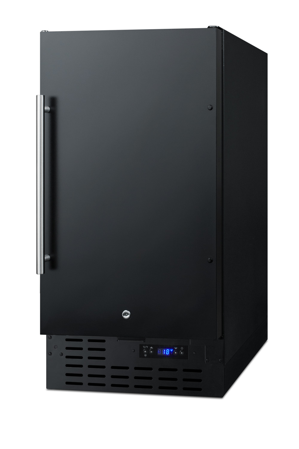 SUMMIT brings true convenience to small kitchen spaces with the SCFF1842ADA, an 18" wide fully frost-free all-freezer designed for use under lower ADA compliant counters.The 32" high SCFF1842ADA is front-breathing for built-in use under counters, but also features a fully finished cabinet to allow freestanding use. The reversible door includes a factory installed lock and professional handle in stainless steel. This unit comes in a jet black finish.Inside, the SCFF1842ADA is fully frost-free to minimize user maintenance, with slide-out chrome shelves that can be adjusted to accommodate a variety of items in the 2.7 cu.ft. interior. This unit includes a digital thermostat for easy and intuitive temperature control.With a uniquely slim size and user-friendly features, the SCFF1842ADA is the ideal freezer for space-challenged spaces. This model meets UL-471 standards and is ETL-S listed to NSF-7 for use in commercial environments..
