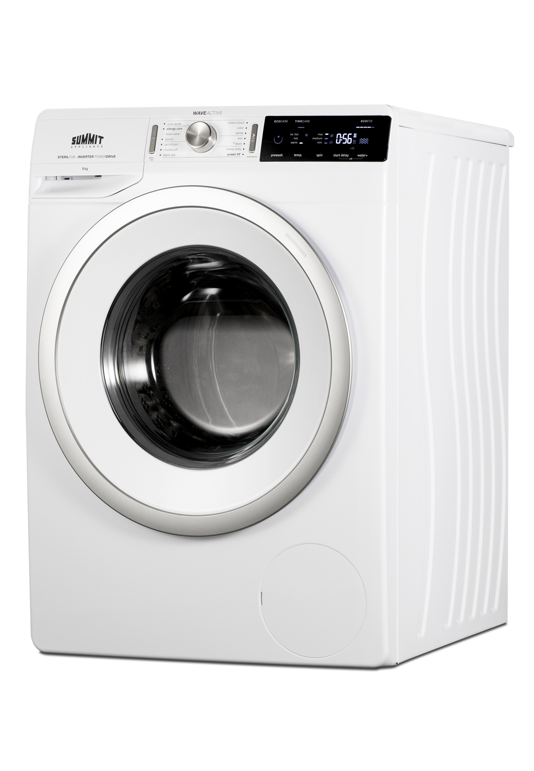 Designed and manufactured in Europe, Summit's ENERGY STAR certified SLW241W is a 24" wide front loading washer designed for true convenience, energy savings, and pristine laundry care results. The SLW241W can wash up to 19.8 pounds of fabric inside the durable stainless steel drum, with a maximum speed of 1400 RPM and a choice of 14 wash programs. The dial wash cycle selector knob makes choosing a wash cycle easy, while the digital touchscreen display allows users to monitor the washer's progress. This unit has a classic white cabinet and glass door. It can be used for freestanding or recessed installation with 1" side clearance, 1" top clearance, and 2" rear clearance. A pre-installed 3-pronged cord works with 208-240V outlets at 15 amps, while four adjustable leveling legs are included to ensure the unit is level on uneven surfaces. Primary wash programs include a cotton wash for black, color, or white clothing, as well as a heavy duty setting, prewash setting, and an auto wash option, which adjusts the duration of the wash depending on the size of the load of laundry. Specialty wash programs let you give the proper treatment to wool, down wear, (including pillows and jackets), sportswear, and loads with synthetic and mixed fabrics. The "allergy care" program offers careful but thorough cleaning for those with sensitive skin or skin allergies, while "Power 59" allows cleaning of smaller loads. The "rinse/softening" program softens or starches washed laundry, and the "sterile tub" program helps to remove detergent residue and bacteria for a cleaner performance. Additional features include a "start/stop" function allowing users to pause during a cycle to add or remove fabrics. A start delay function permits users to set the start time in 30-minute increments up to 24 hours, while TIMECARE mode shortens the cycle time for quick yet reliable washing. The pull-out detergent compartment makes measuring easy and clean. Environmentally-friendly performance features includ