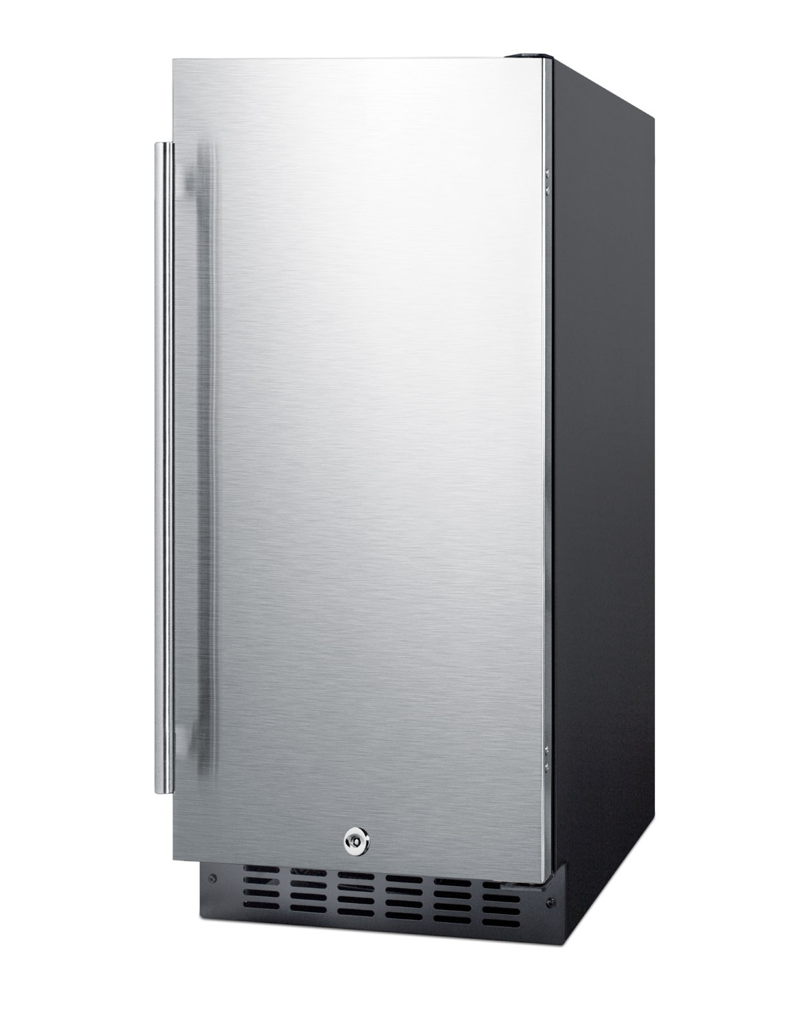 SUMMIT SPR316OS is a versatile all-refrigerator designed for use in residential or commercial outdoor kitchens.At just 15" wide, the SPR316OS is ideally sized for built-in installation in any outdoor kitchen, with a fully finished cabinet that also allows freestanding use. The reversible stainless steel door includes a 20" long handle for a professional look and a factory installed lock for added security.Inside, the SPR316OS offers 3 cu.ft. of storage space. Three adjustable glass shelves allow easy storage while the floor features slots carefully sized to hold wine bottles in place. The door includes two racks for keeping condiments and beverages in easy reach. This unit includes a digital thermostat with interior controls and recessed LED lighting. Frost-free operation ensures low maintenance, while the integrated GFCI cord offers added protection in the outdoors.Sized to fit and designed for convenience, the SPR316OS makes an ideal addition to any outdoor kitchen space. This model is ETL-S listed to NSF-7 standards for commercial use.