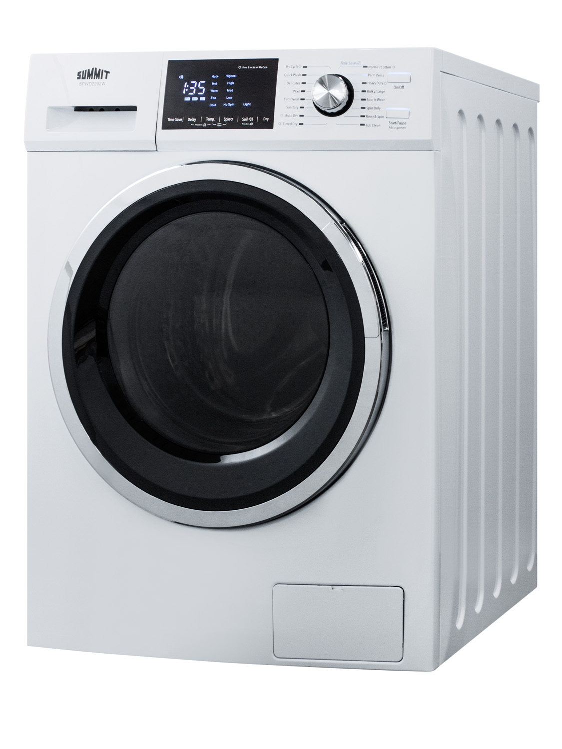 SUMMIT SPWD2202W is a 24" wide washer/dryer combo designed to maximize laundry capacity in an easy fit.This non-vented condensing (ductless) 115V washer/dryer comes in a classic white finish. The stainless steel drum offers a generous 2.7 cu.ft. capacity to accommodate larger laundry loads than previous versions of this unit. The front-loading design features a large, easy-to-open glass door and pull-out dispenser for detergent and fabric softener. A combination digital and dial control panel with a large LCD readout makes it easy and intuitive to operate this unit.The SPWD2202W includes 16 wash programs to ensure all fabrics receive the proper treatment. Settings include specialized programs for cotton, permanent press with de-wrinkling, heavy duty, bulky/large loads, sportswear, babywear, wool, delicates, and more.A "Sanitize" cycle allows the washer to use higher temperatures for smaller loads, while a "Quick" setting is ideal for washing small loads in less time. For improved maintenance, this combo includes a "tub clean" cycle. Five spin speeds up to 1300 RPM help to provide the right level of spin for each dry cycle. This unit offers the choice of four temperature settings and three soil levels, as well as a memory function ("My Cycle") for added convenience.With its quality performance, large capacity, and attractive design, the SPWD2202W brings true value and efficiency to laundry in space-challenged settings.NOTE: This unit replaces previous model SPWD2200W, and features an upgraded interior with a larger wash and dry capacity.