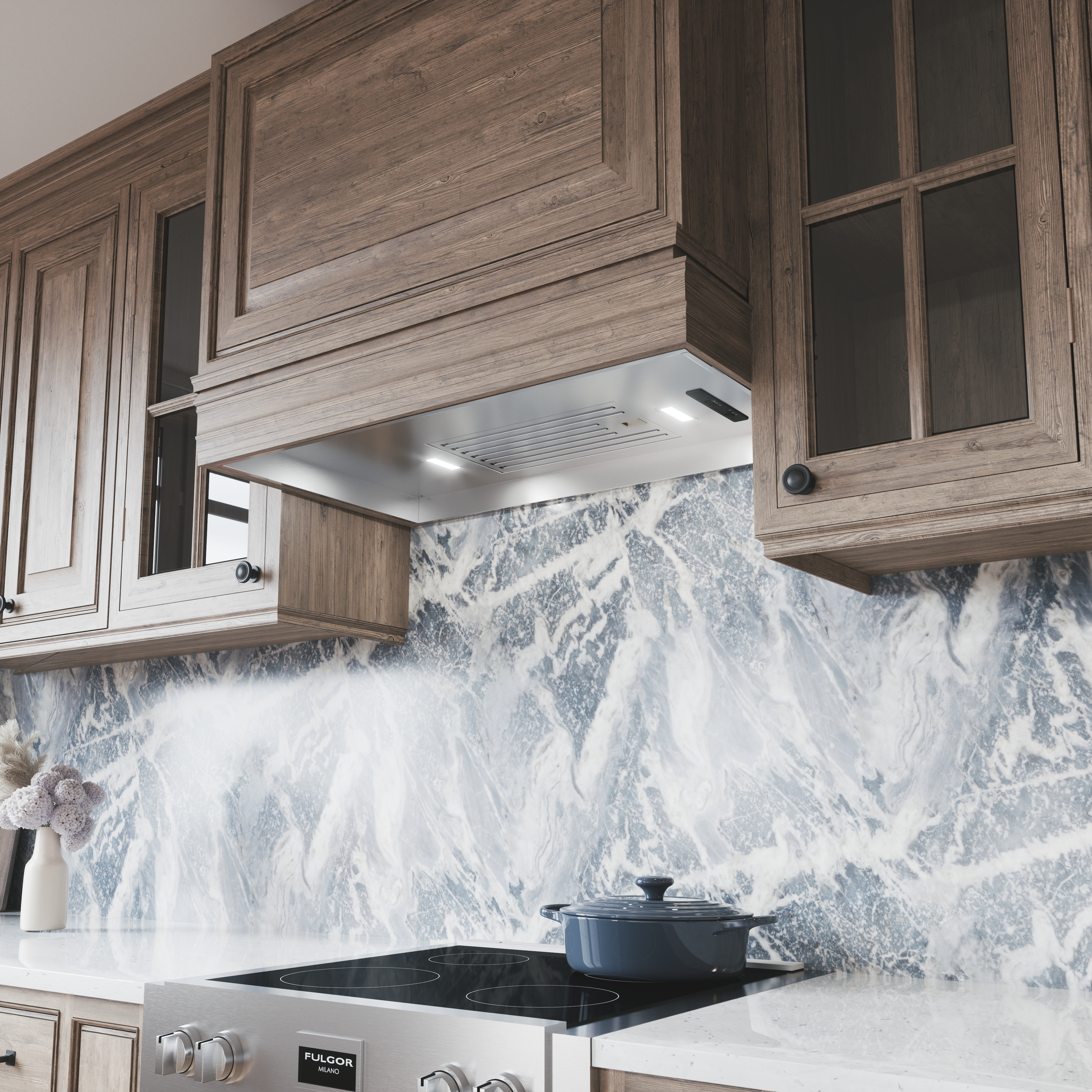 The Vortex insert leads the way as the industry’s first adjustable-depth insert. Vortex is designed to extend 3 inches to accommodate custom hood depths from 17-1/2 to 20-1/2 inches. Add to this its quiet, 390-CFM blower, dual-level LumiLight LED lighting, and optional recirculating kit — Vortex stands tall among the rest.