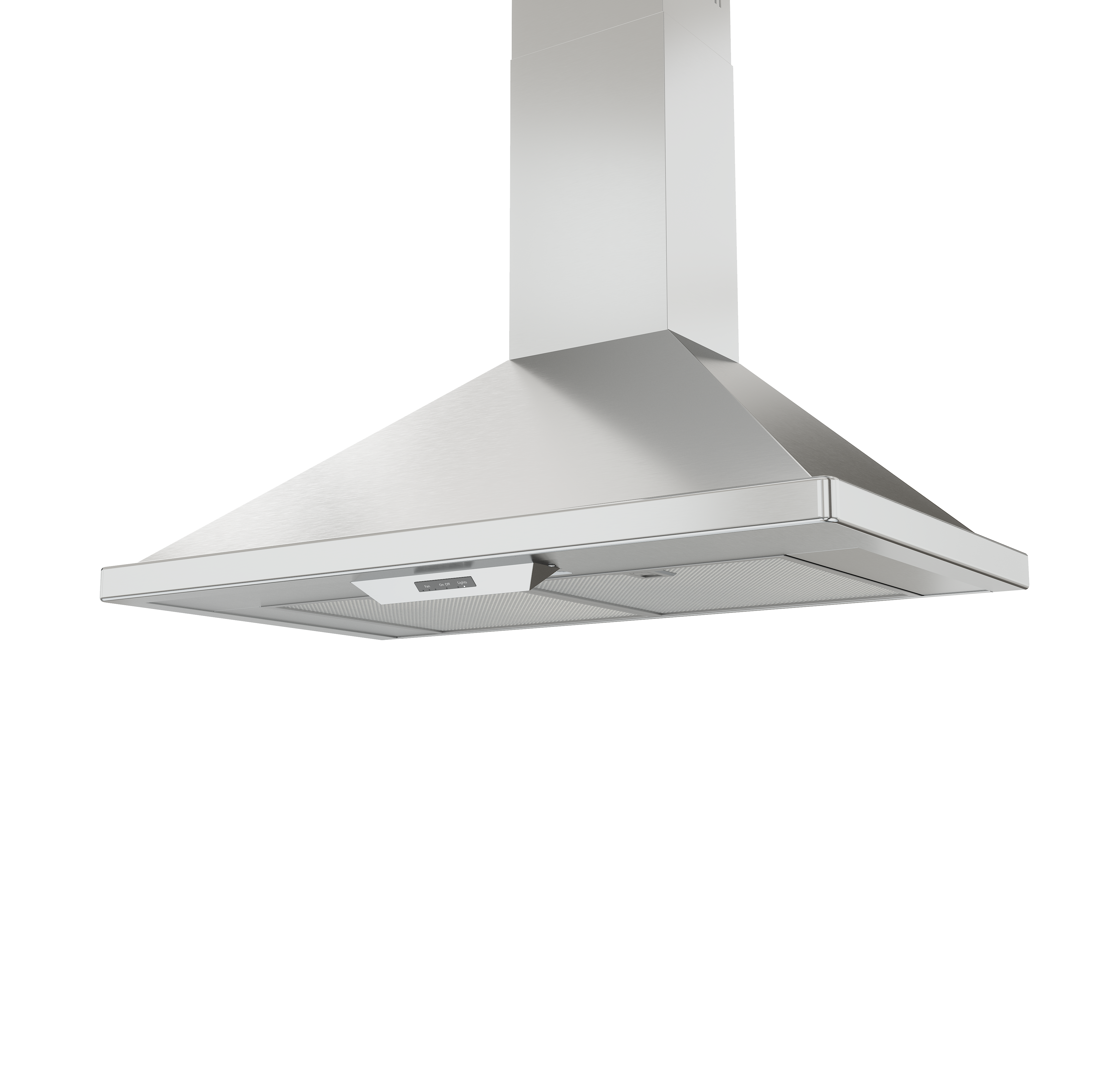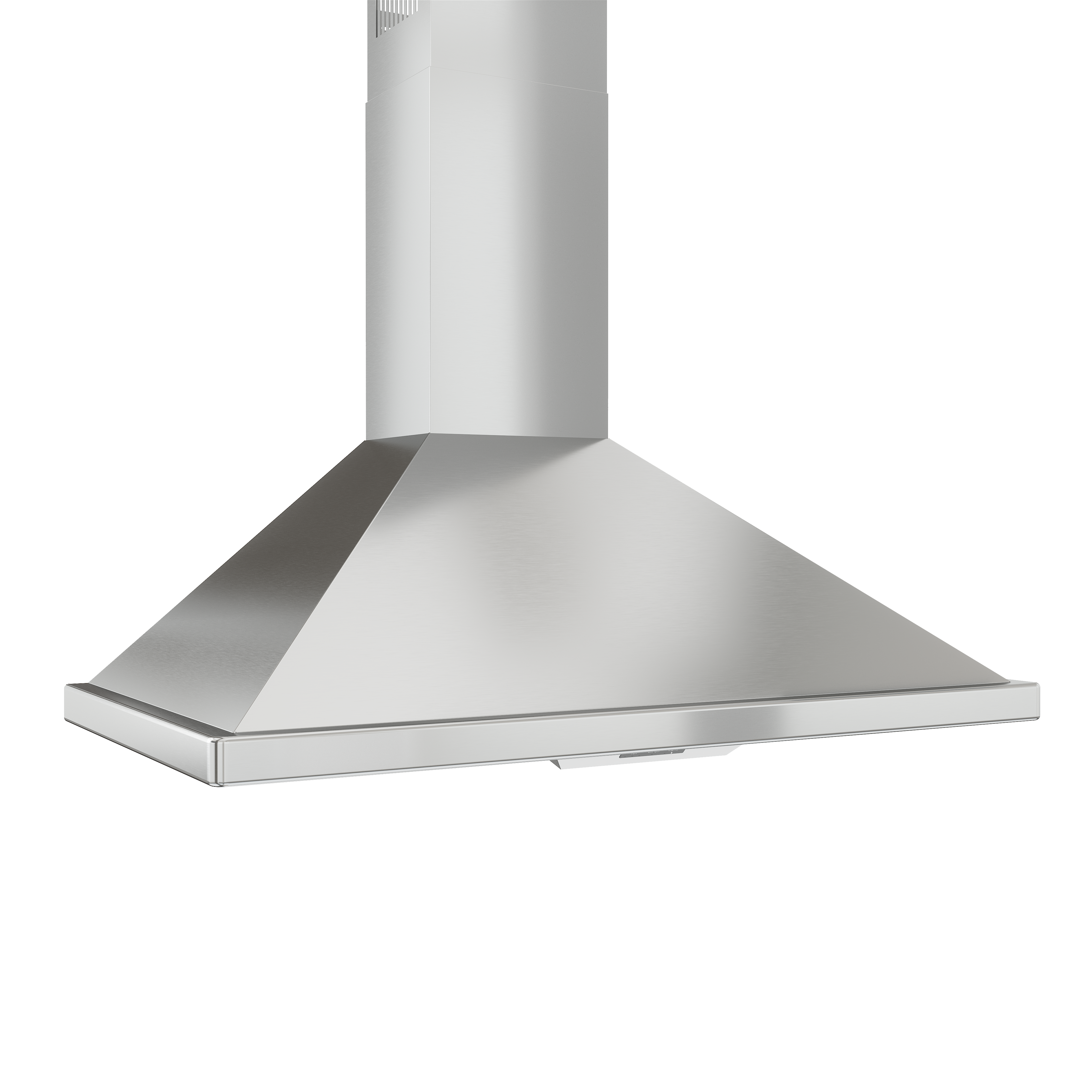 Get noticed! The Brisas BVE wall-mounted range hood makes quite an impression. From its pro-style pyramid design to its 600-CFM internally installed motor, BVE is head and shoulders above the competition. Relying on the highest quality manufacturing standards, BVE exudes strength that lasts and quality that is easy to relate to: easy-to-install out-of-the-box design, high-grade stainless steel, tight seams, and precision metal folding for seamless corners and edges.