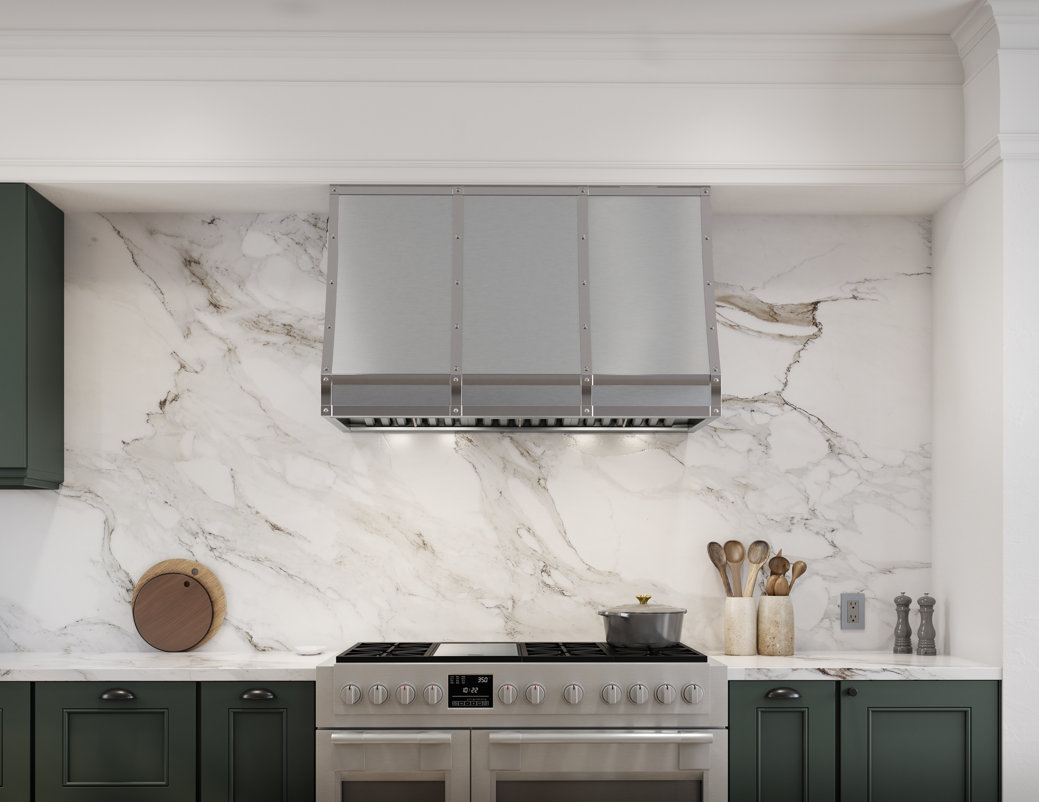 - Optional Hood Banding Kit in Satin Gold, Matte Black, or Polished Copper Finishes