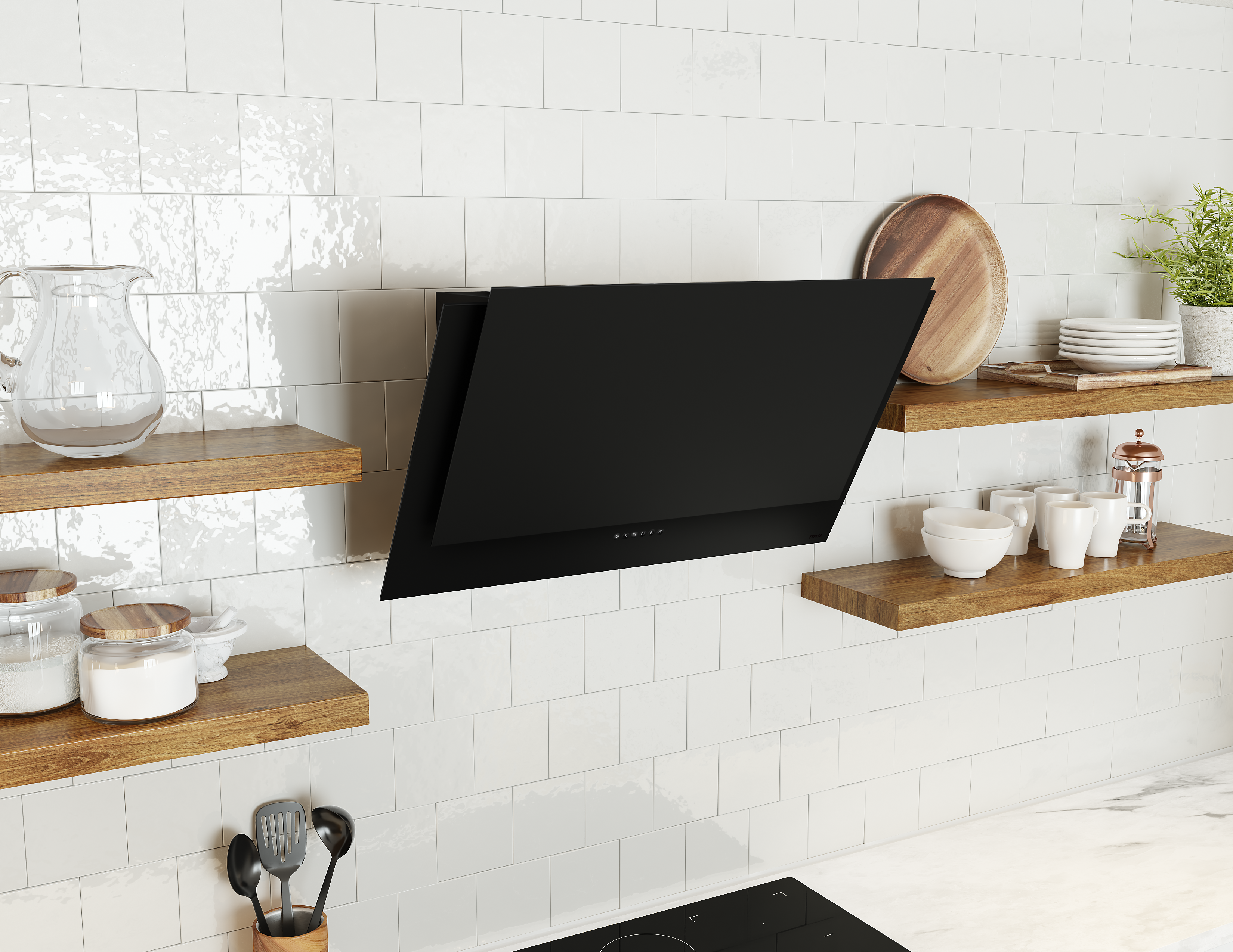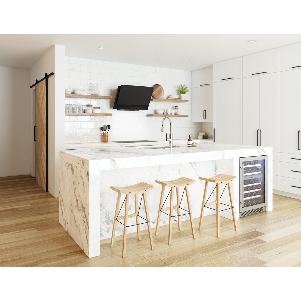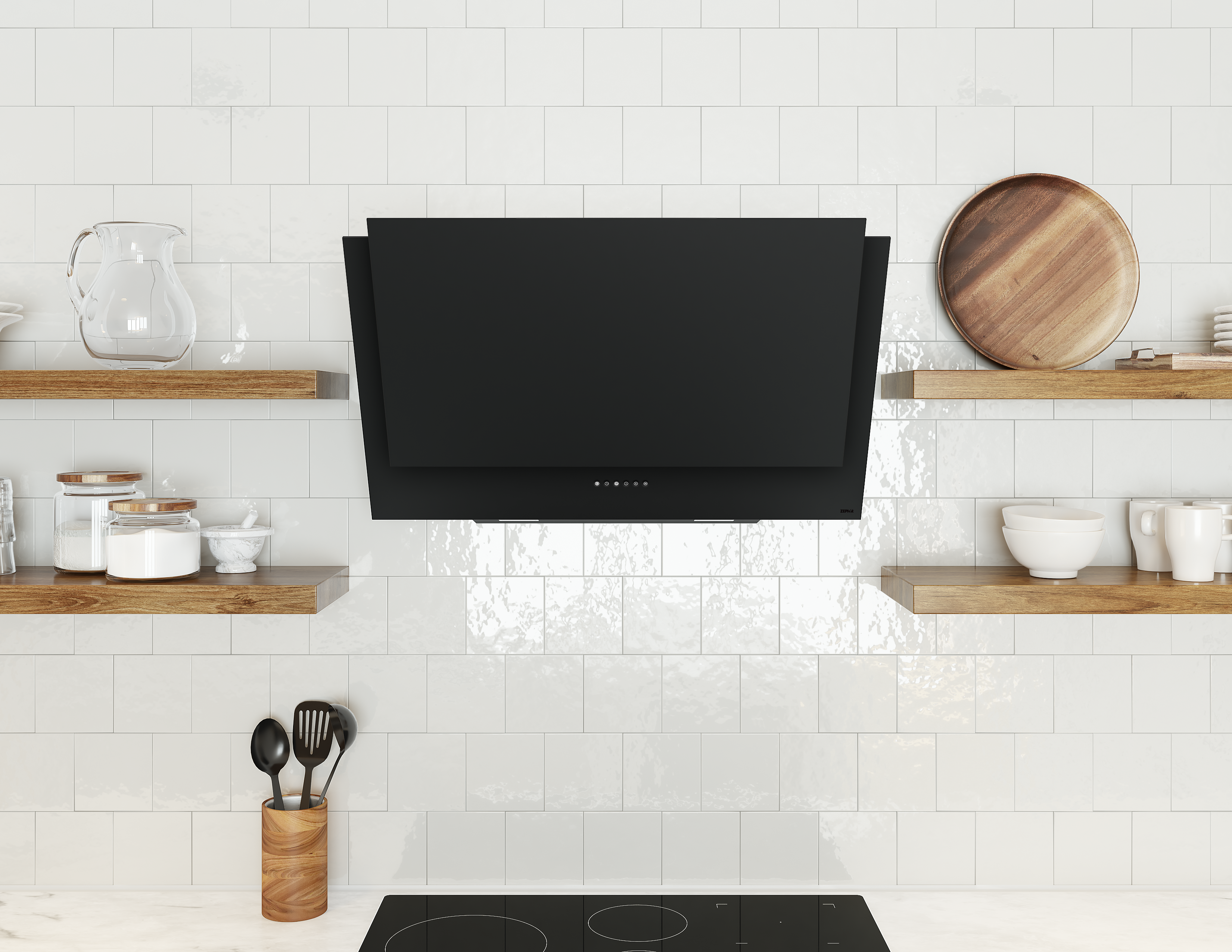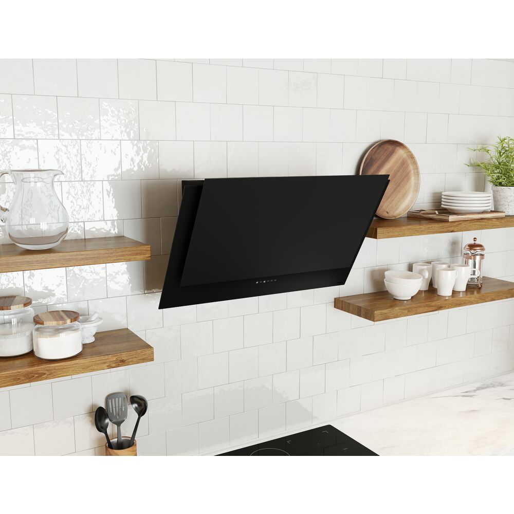 Apex Wall Mount Range Hood with Capacitive Touch Controls, Tri-Level LED Lighting, Aluminum Mesh Filters, Multiple Blower Options, CleanAir Function, Auto Delay-Off, and UL Listed in color black. Exceptional style, plus the power and performance youd expect from Zephyr. Featuring white or black matte finish, easy Capacitive Touch Controls and a recirculating option, the Apex Wall is a hood for today, tomorrow, and beyond. Also includes duct cover and remote control options.