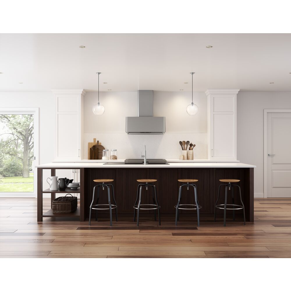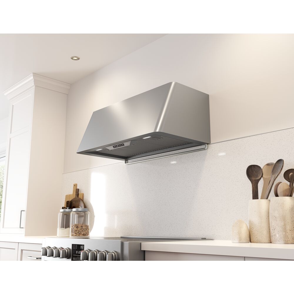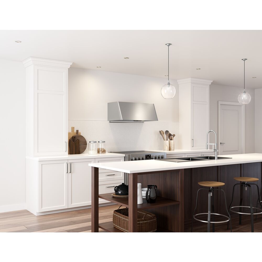 Taking kitchen glamour to new heights, the Mesa Wall is available in three finishes, including satin gold, for the very latest in kitchen design trends. With Invisible Touch Controls, baffle filters and multiple blower options, the Mesa is set to become the hardworking star of the most fashionable kitchens. Other options include a remote control, duct covers in 3 finishes, and accent rail in satin gold or stainless.