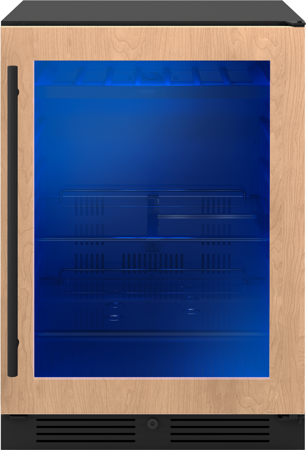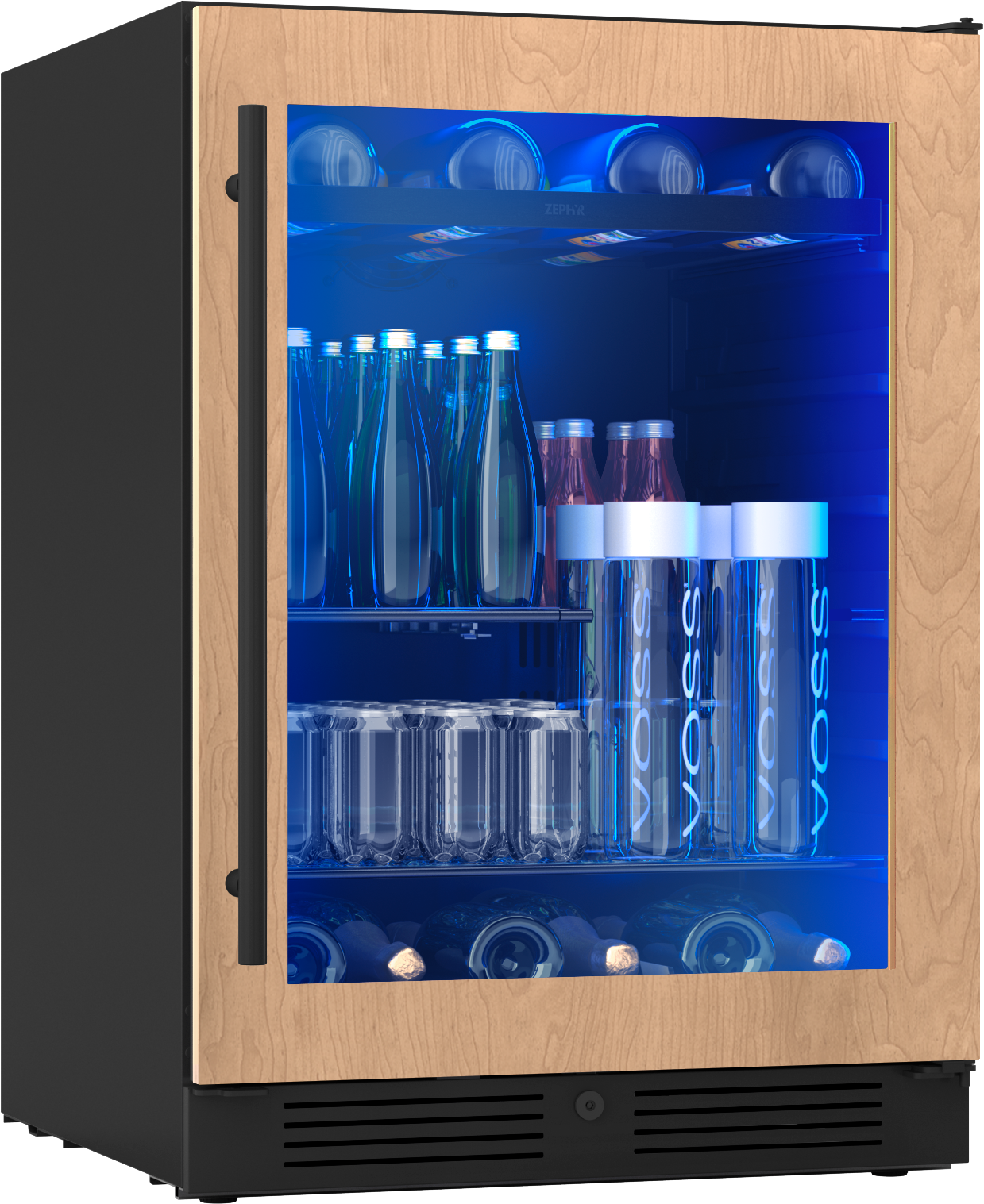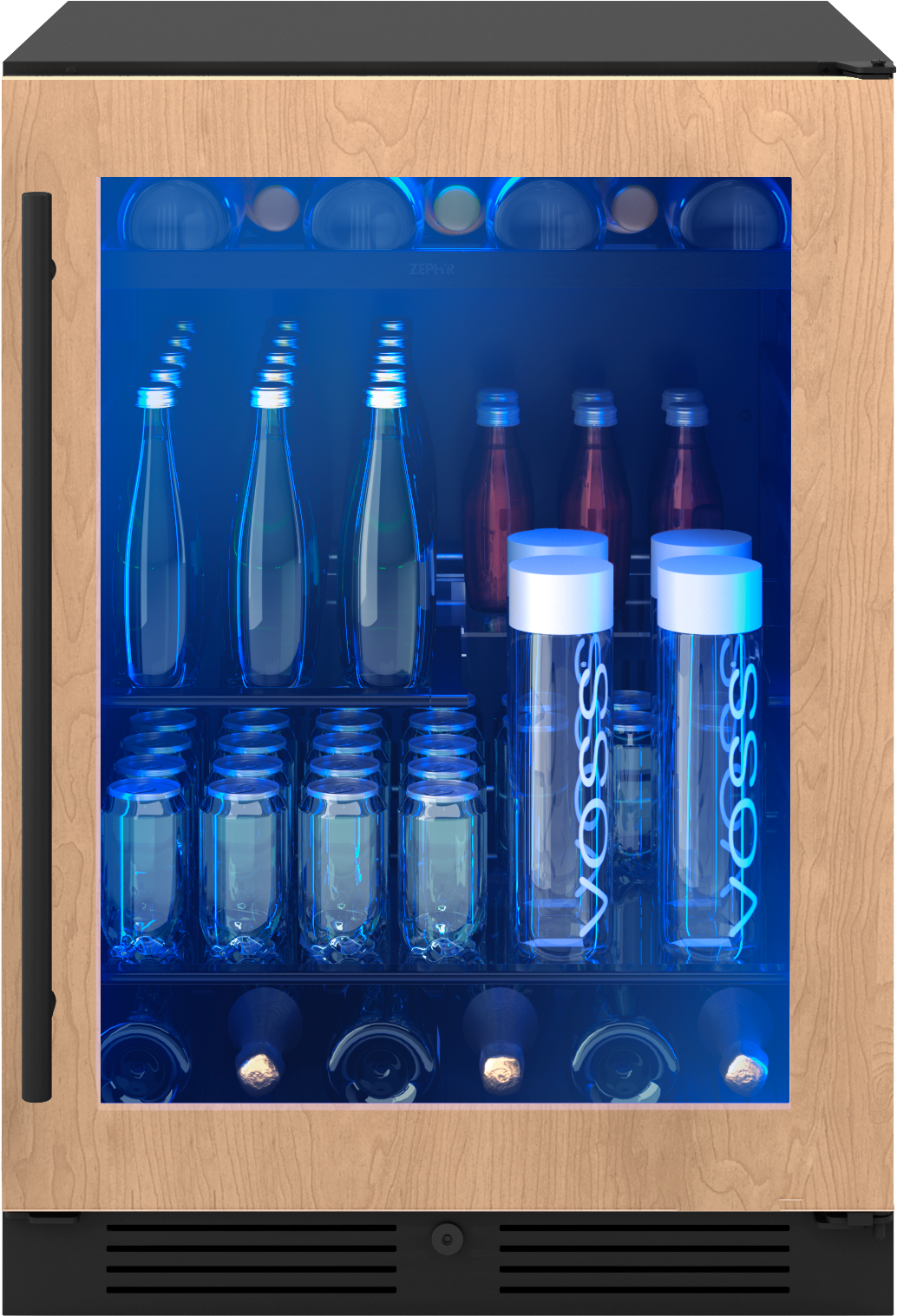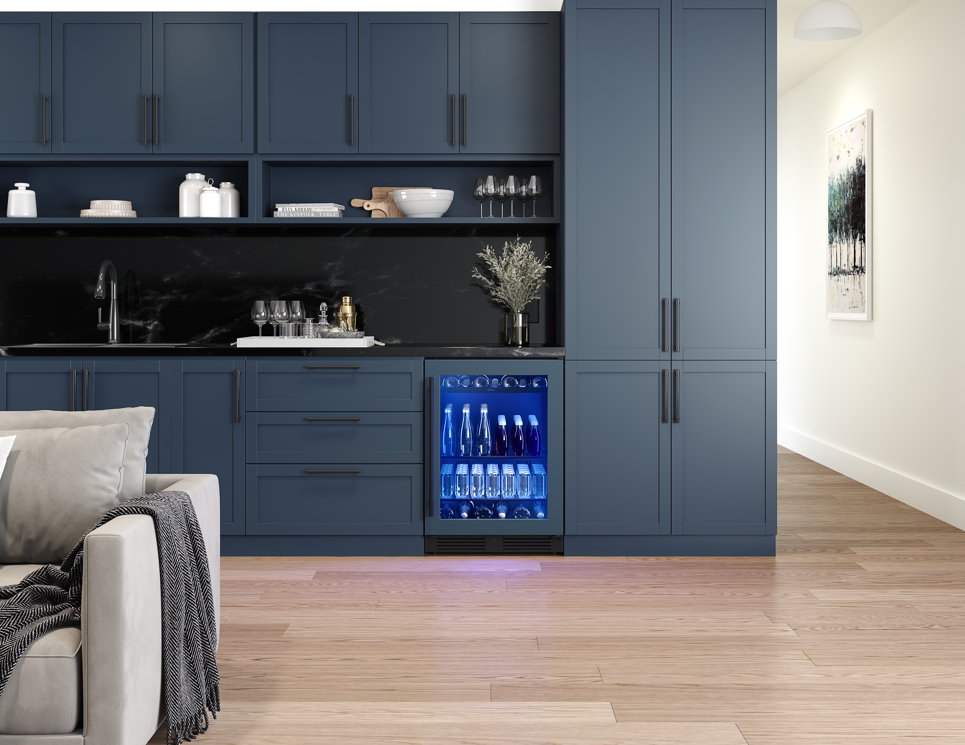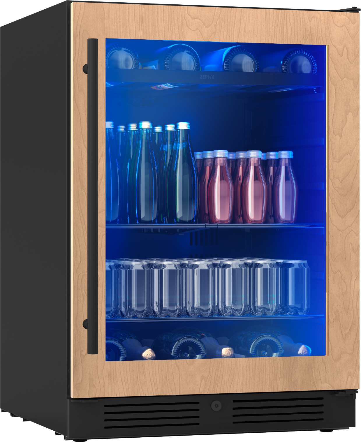 Complete your entertaining lineup with the Presrv Panel Ready Beverage Cooler, designed to harmonize seamlessly with your kitchen cabinetry. Featuring a Full-Extension Wood Rack that stores a crowds worth of refreshments and a convenient retractable glass quarter-shelf to give you the flexibility to display taller bottles such as water, 2-liter bottles of soda, or champagne. Set the party mood with an illuminated control panel and new vertical LED light strips in three colors and four light levels.