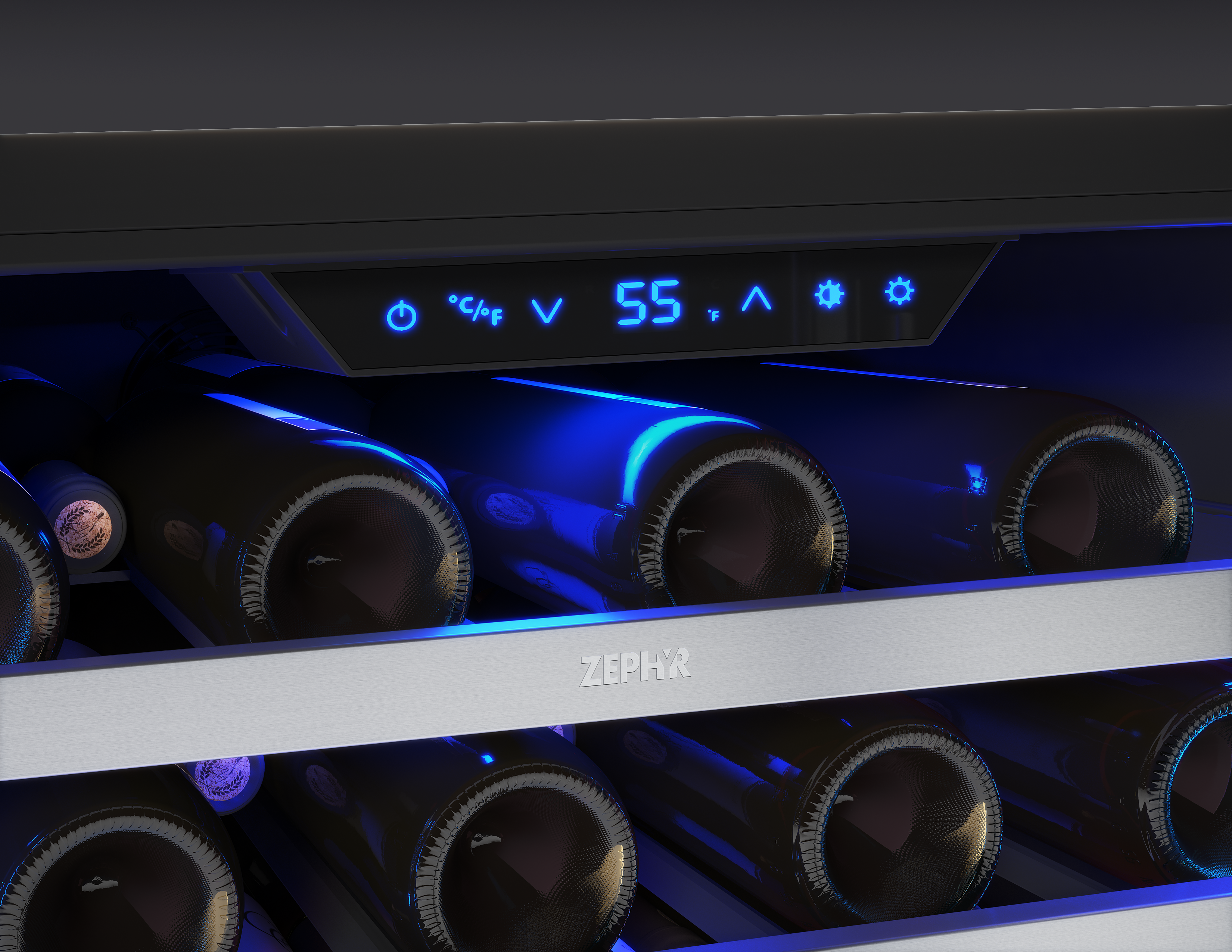 For the lover of fine wine, fine design, and peerless parties, our Presrv™ Single Zone Wine Cooler is as cool — and as loaded with details! — as it looks. Featuring Full-Extension Wood Racks; PreciseTemp™ temperature control for maintaining accurate temperatures; Active Cooling Technology to ensure even cooling; and a Vibration Dampening System to keep wines chill, still and ready to open at a moment’s notice. Enhance the party mood with an illuminated control panel, plus vertical LED light strips in three colors and four light levels.
