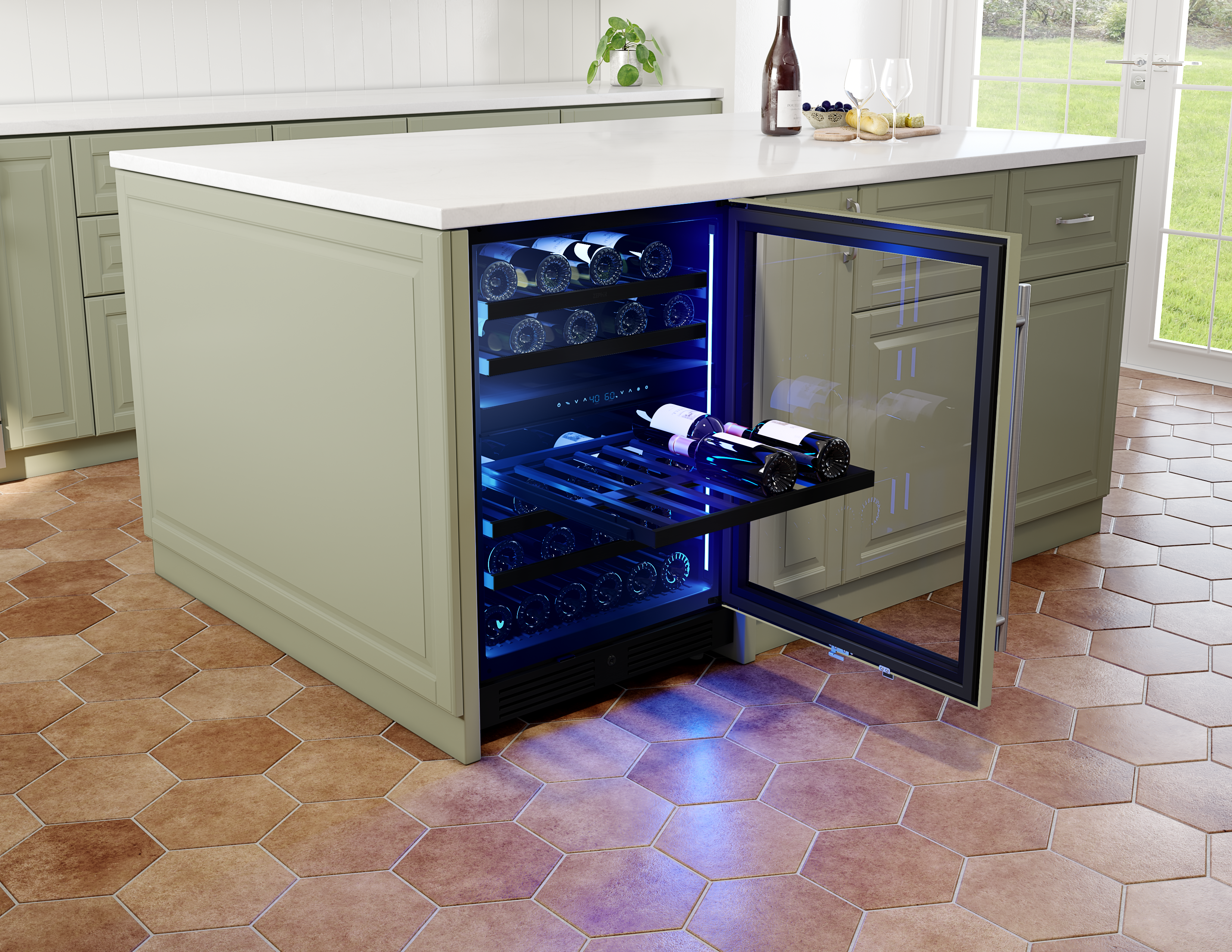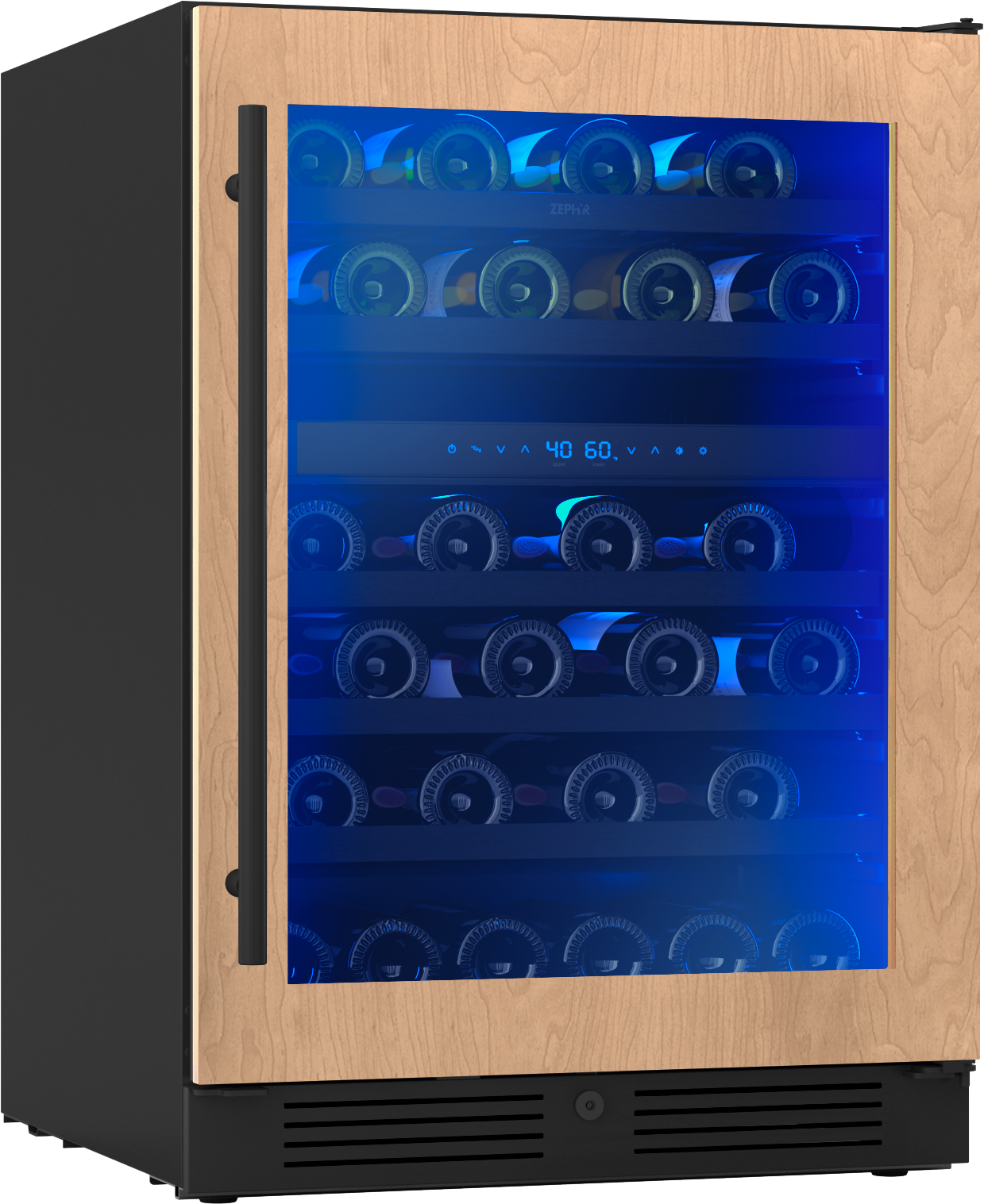 Harmoniously integrate the Presrv™ Panel Ready Dual Zone Wine Cooler into any entertaining space and match your cabinetry with ease. Two temperature zones with PreciseTemp™ temperature control mean never having to choose between white or red, and always being ready to pour anyone’s favorite. This large capacity cooler features Active Cooling Technology to ensure even cooling, and it’s easy to enhance the party’s vibe with an illuminated control panel and new vertical LED light strips in three colors and four light levels. Door handle sold separately, and wood panel not included.
