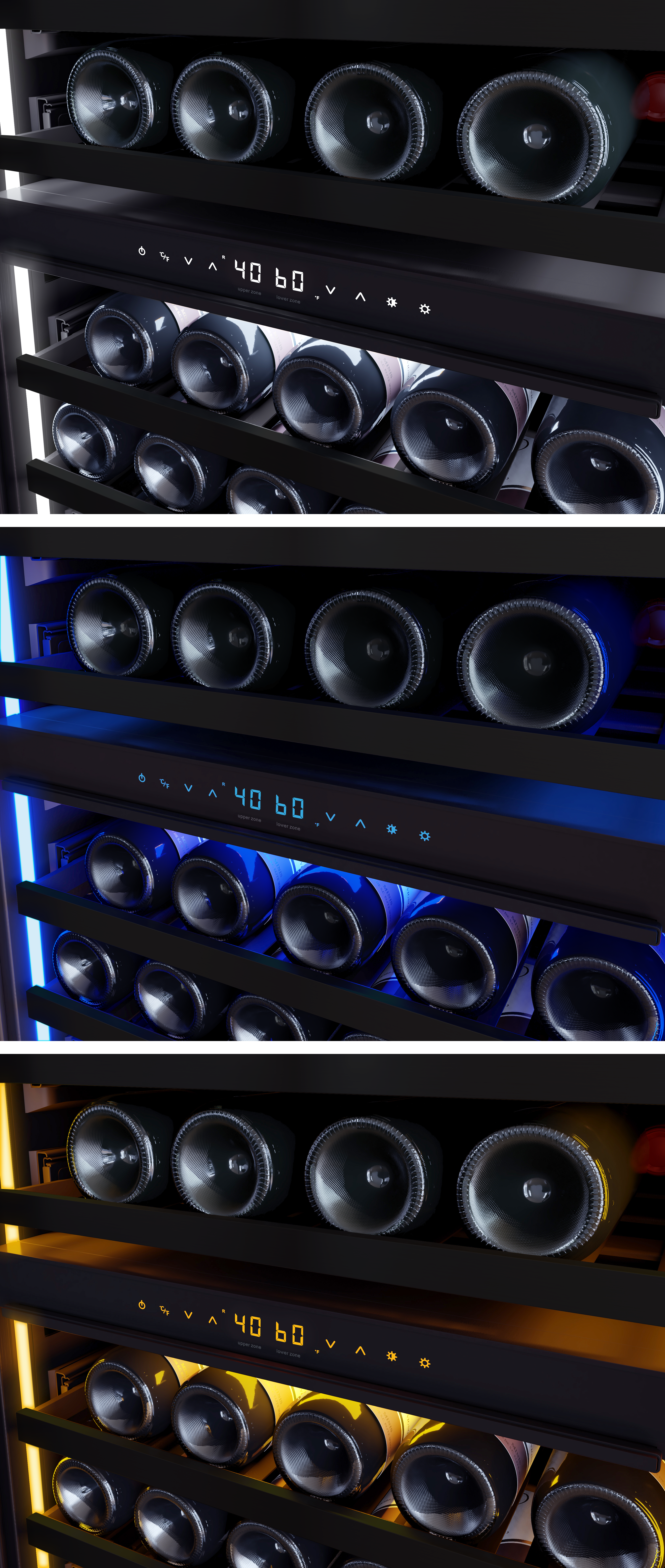 Our new Full Size Panel Ready Dual Zone Wine Cooler will seamlessly harmonize with your kitchen cabinetry while keeping your wine at the optimal serving temperature. Its party-ready, with exciting features like Hettich articulating hinges, Full-Extension Wood Racks, vertical LED light strips in three colors and four light levels, an illuminated control panel, and an updated kickplate with built-in lock. Also boasts an auto-illuminating function that sets the lighting to the highest brightness level when the door opens for greater visibility. Door handle sold separately, and wood panel not included
