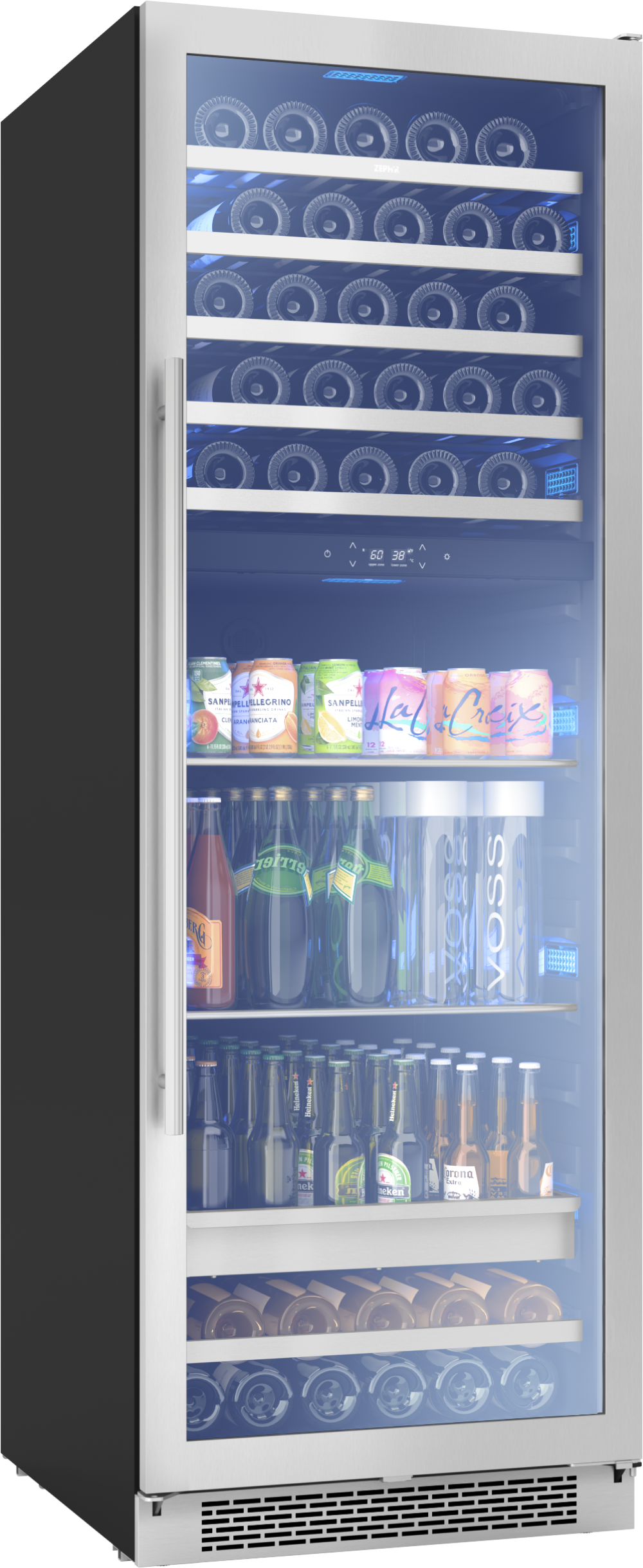 Presrv Wine and Beverage Cooler 24in Full Size SS+Glass Reversible Door 2 Zones