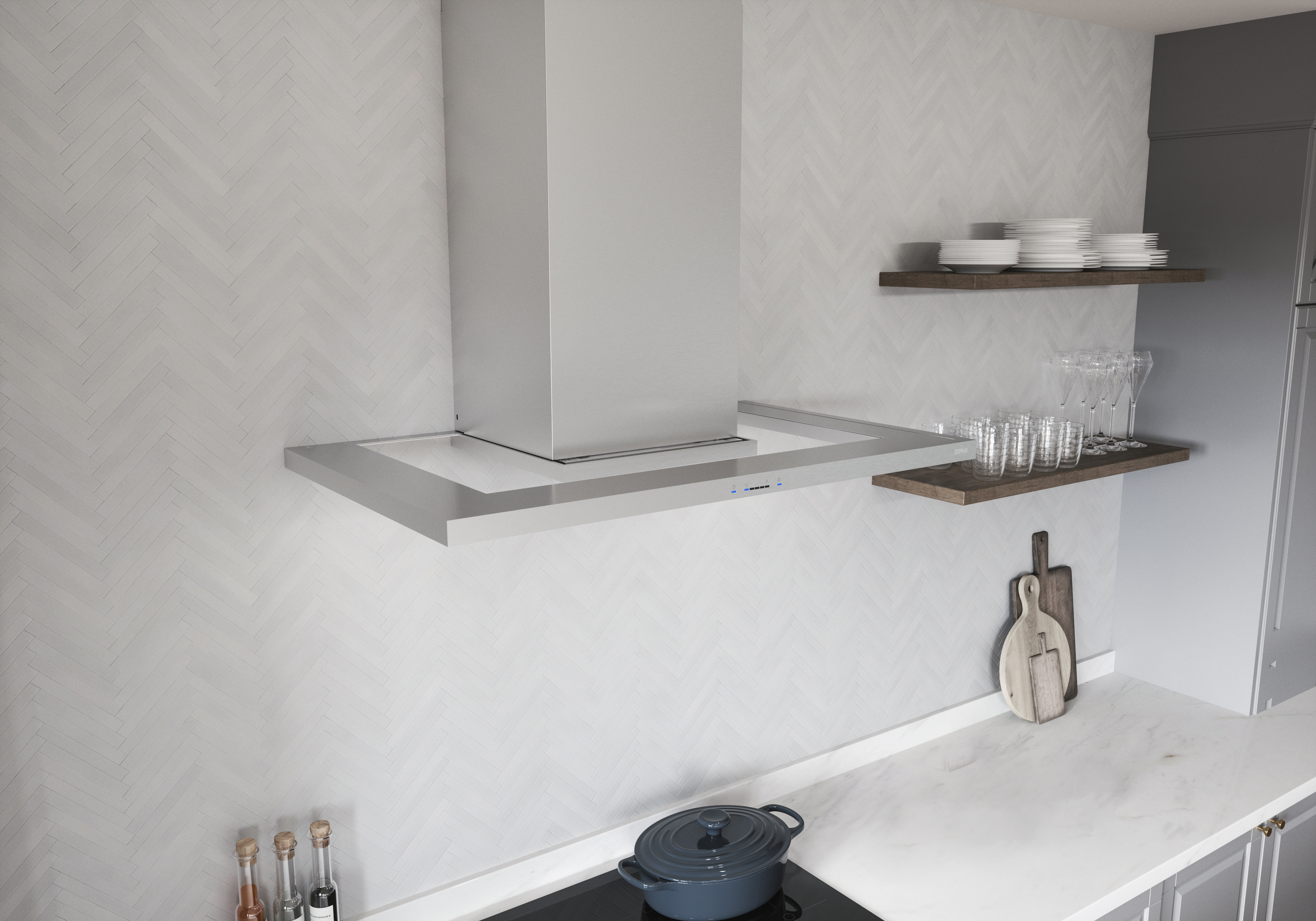 Resembling a floating island made of steel and glass, Modena houses LumiLight LED lighting and 5-speed ICON Touch® controls within its one-inch stainless steel canopy. Nestled discreetly between the chimney and its outer ring, Modena’s glass canopy adds a sense of lightness and augments the range hood’s symmetry and low-profile design.