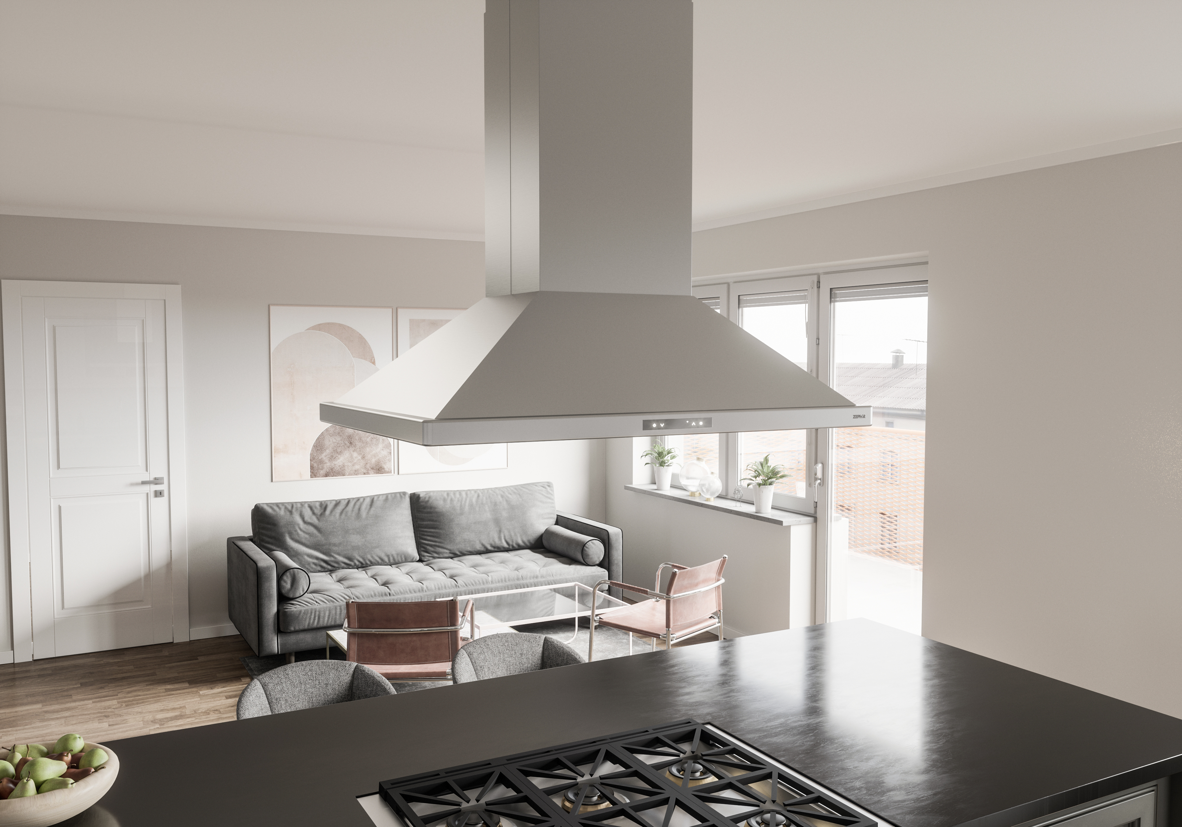 Strong and sophisticated with upward-angled walls, 700-CFM PowerWave blower, Zephyr Connect capabilities, tri-level LumiLight LED lighting, 6-speed Proximity Touch Controls and Quick-Lock Installation System with magnetic duct covers.