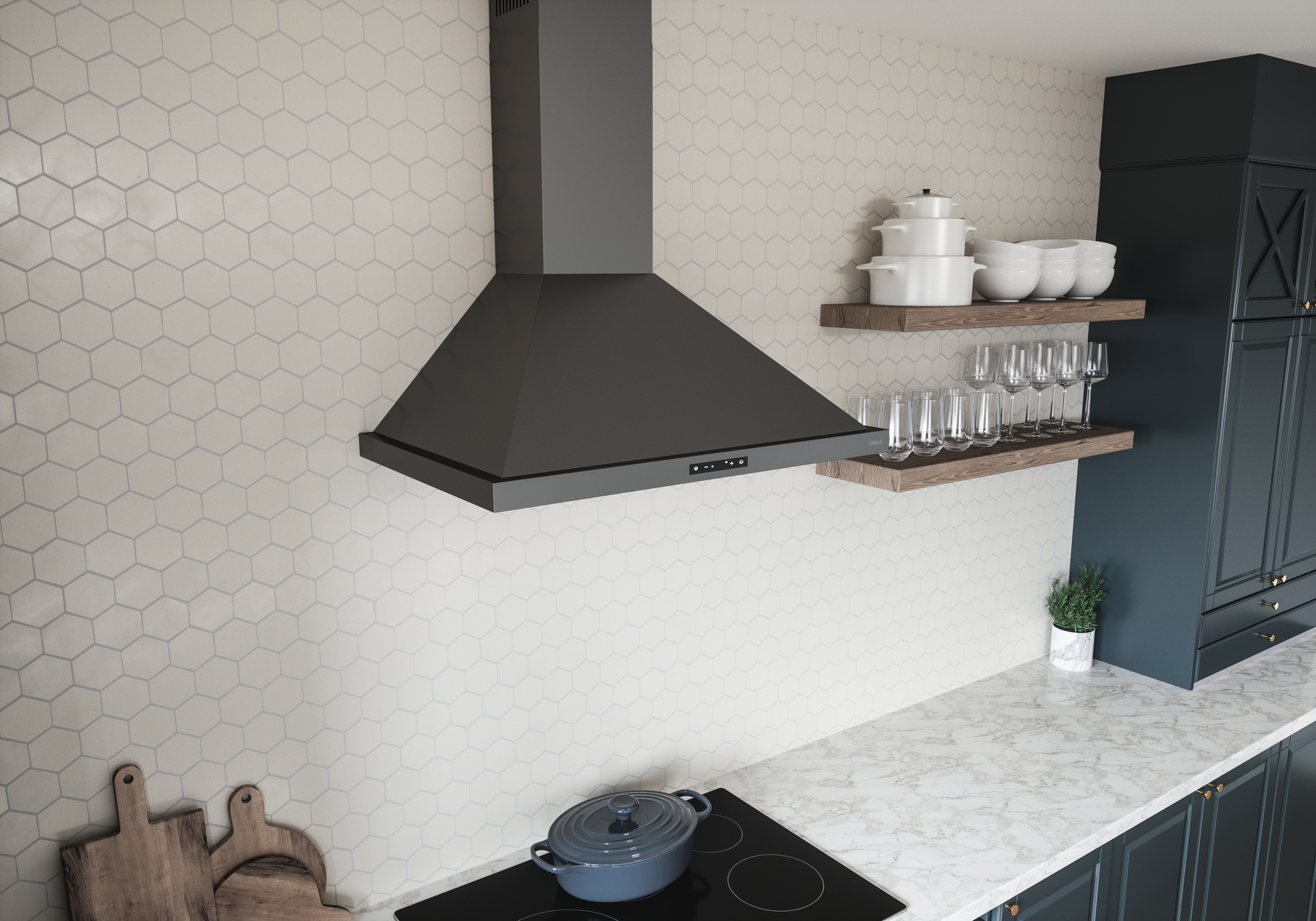 Zephyr Ombra Range Hood combines powerful functions with a symmetrical design and efficiently cleans the surrounding air. Ombra boasts a high-performance 600-CFM blower and the exclusive Airflow Control Technology (ACT) that conforms to the local code requirements. Available in sleek black stainless steel and stainless-steel finish, Ombra imparts grandeur to your kitchen. The wall-mounted range hood includes a dual-level LumiLight LED Lighting, capacitive touch control, aluminum mesh filters, and an optional hybrid baffle filter to augment its functionality.