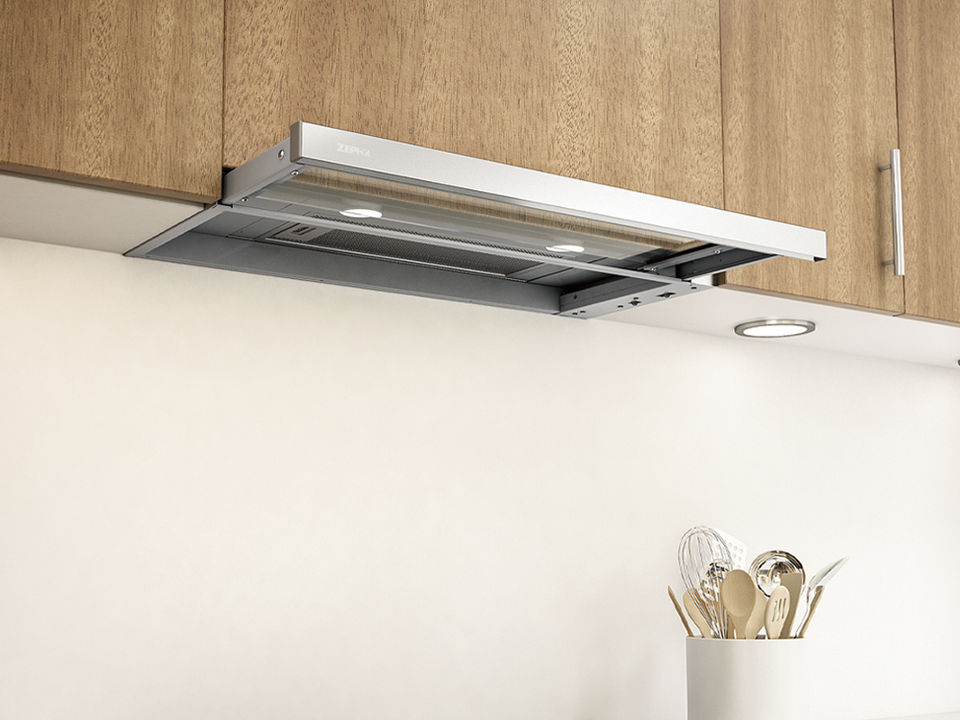 Tucked neatly out of sight within your cabinetry, Pisa is a minimal alternative to your typical under-cabinet range hood. Powered by the strength of a 500-CFM or 290-CFM blower, Pisa’s low-profile body delivers stunning design and quality performance. Its retractable visor helps in the capture of air and puts control at your fingertips. Pisa is perfect for kitchens that require a more discreet look.