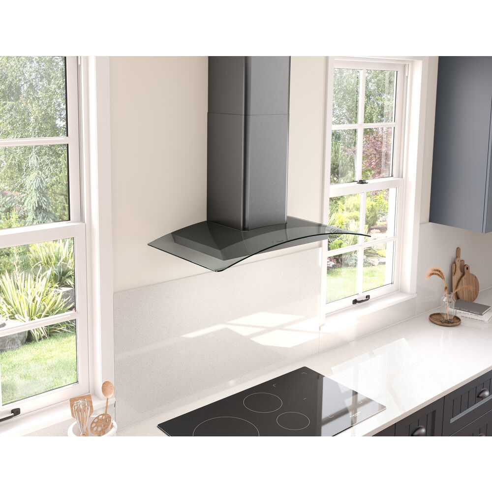 The delicate curve of a glass canopy arching over your cooktop will add an elegance to your everyday cooking experience. Featuring Zephyrs trend-setting black stainless steel, the Ravenna combines 21st century know-how with timeless beauty. Featuring clear and smoke-gray glass canopy options, Airflow Control Technology (ACT), ICON Touch controls, LumiLight LED lighting, and a powerful yet quiet 600-CFM blower. Now available with an optional ADA-compliant remote control.
