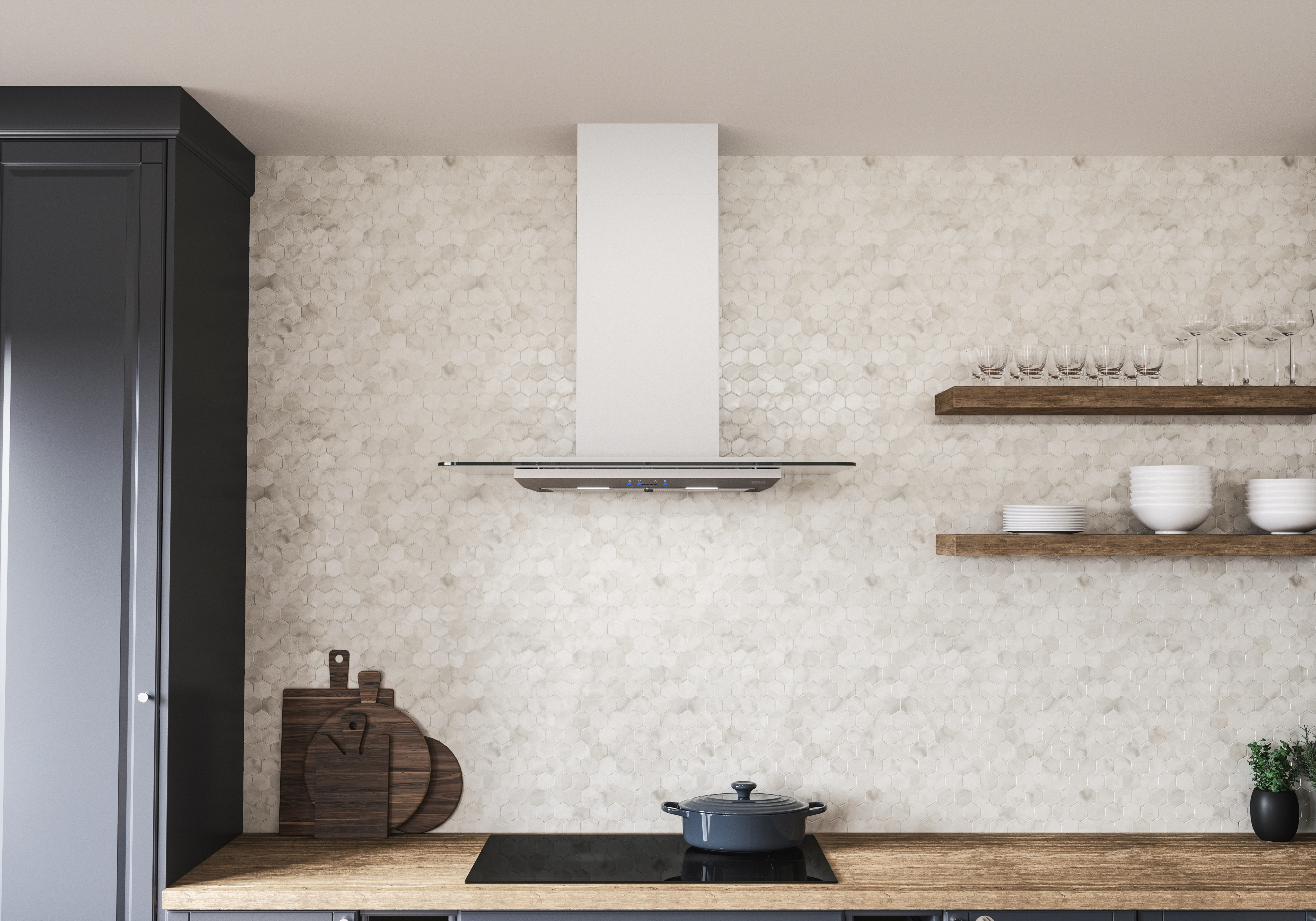 Upgrade your kitchen to a modular cooking space with a classy range hood by Zephyr. Verona is topped with a straight glass canopy that also serves as an ambiance setting LED display. Select the Cloud White, Deep Blue and Amber color options to best match your kitchens décor, or choose the demo mode that displays all three settings in 10 second intervals. Verona includes LumiLight LED lighting and 5 speed ICON Touch Controls.
